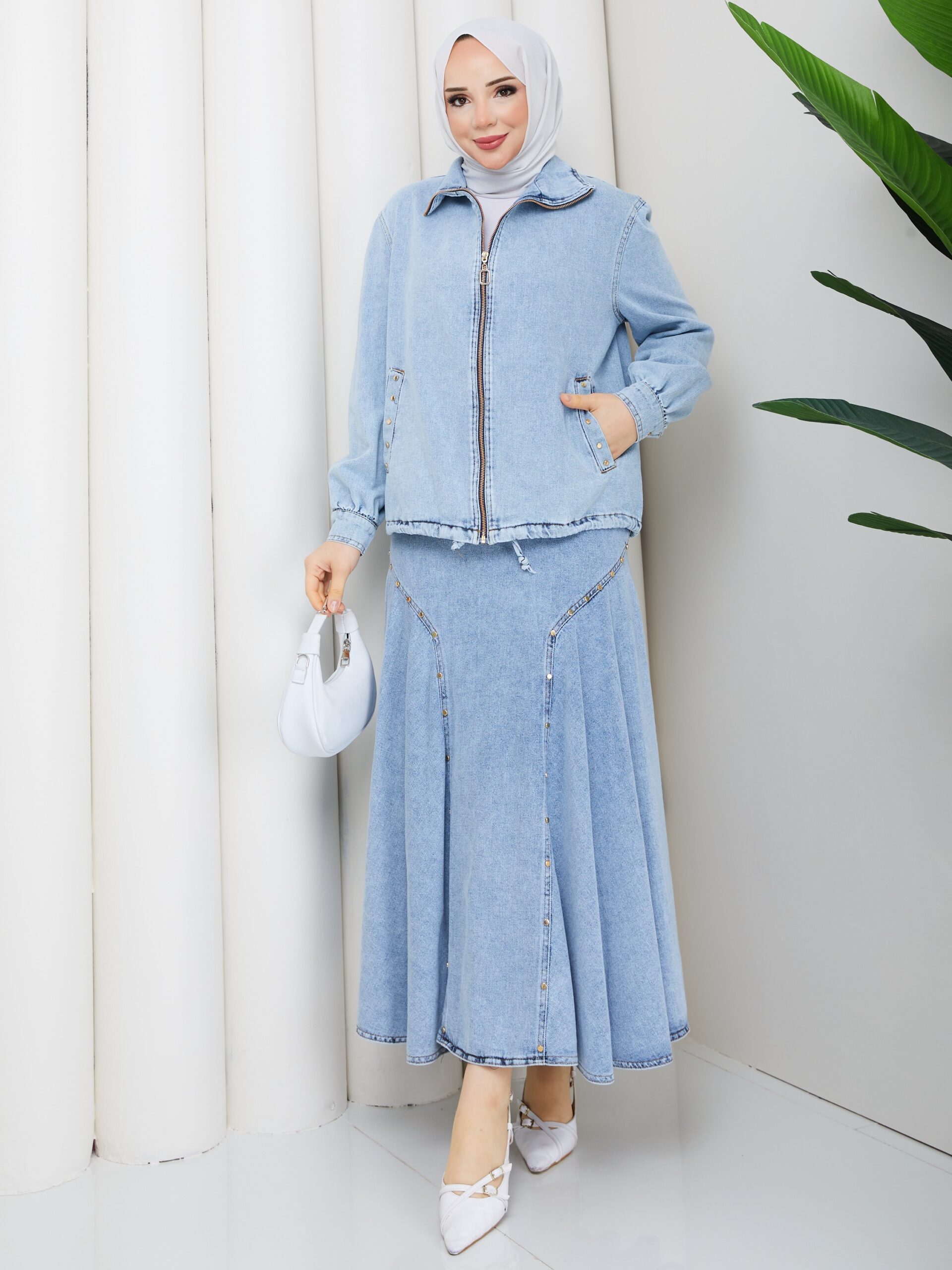 Açık renk kot takım eteklı