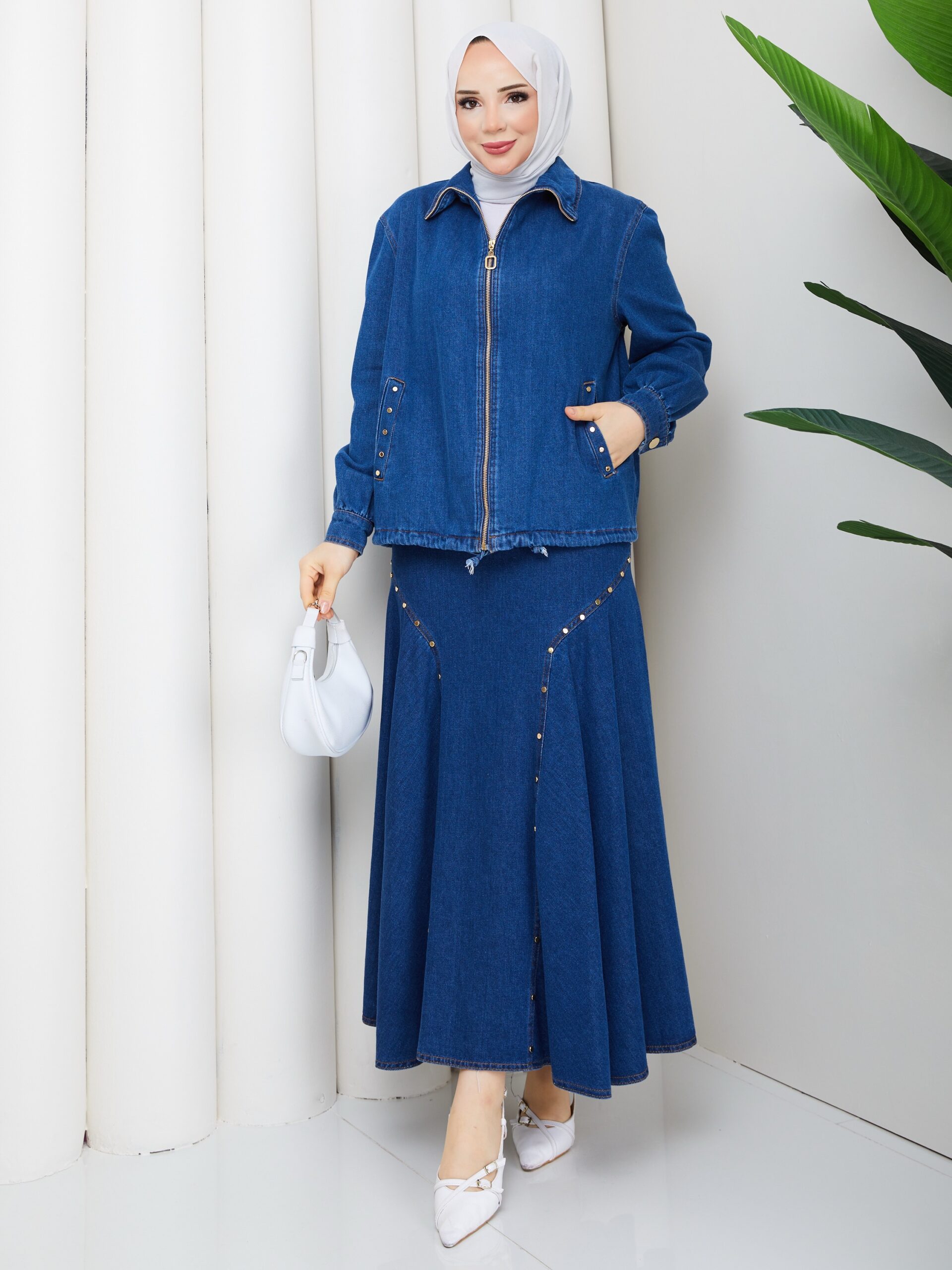 Açık renk kot takım eteklı