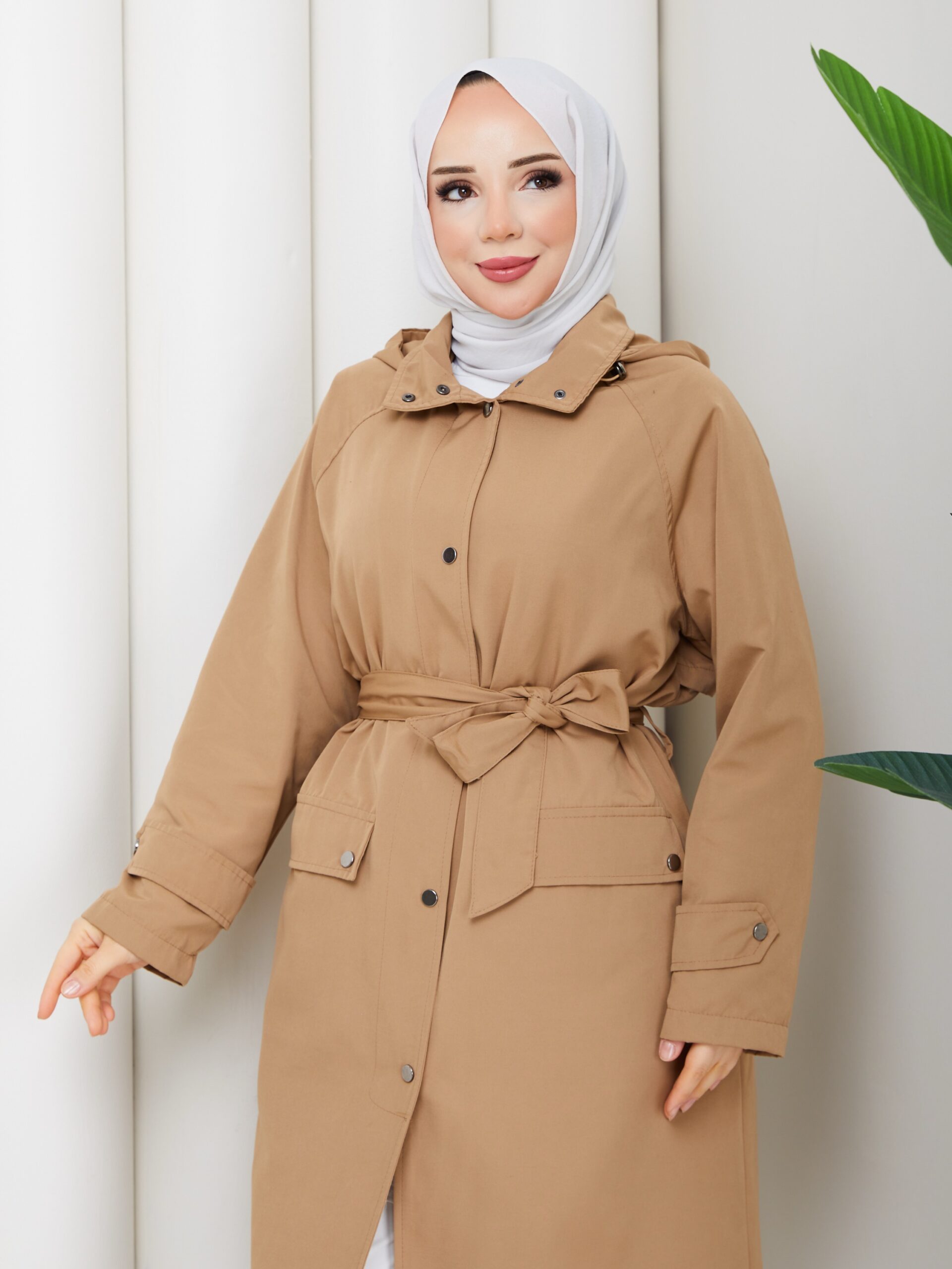 Hakı renk çıtçıtlı trenckot