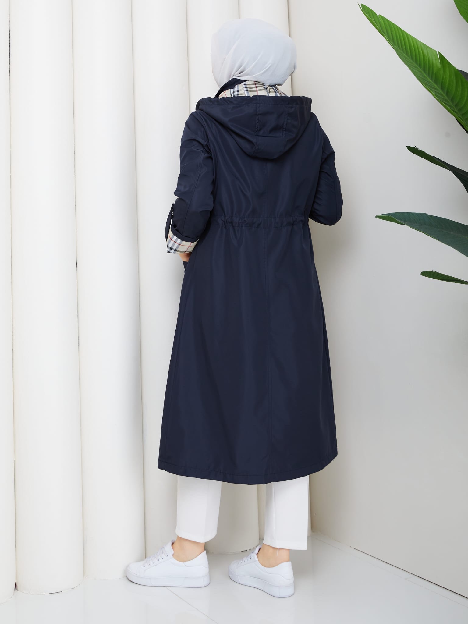 Lacıvert karelı bonded trenckot