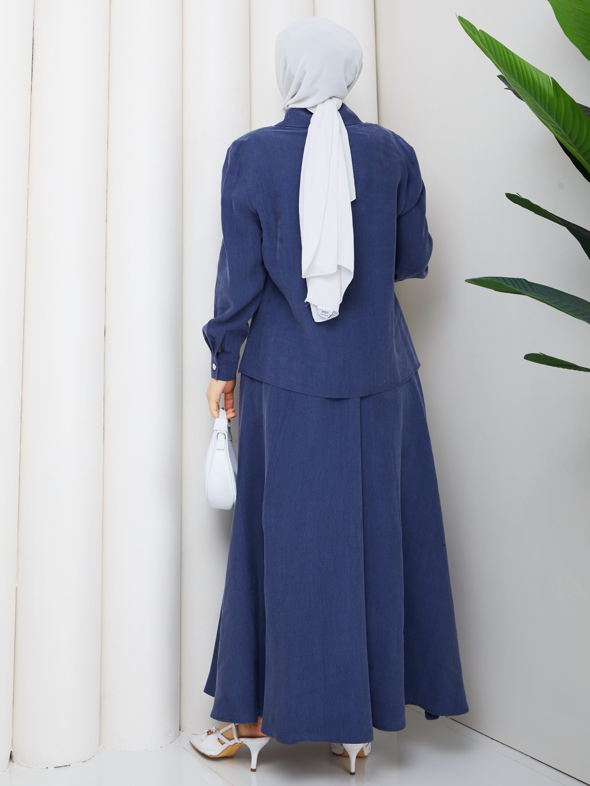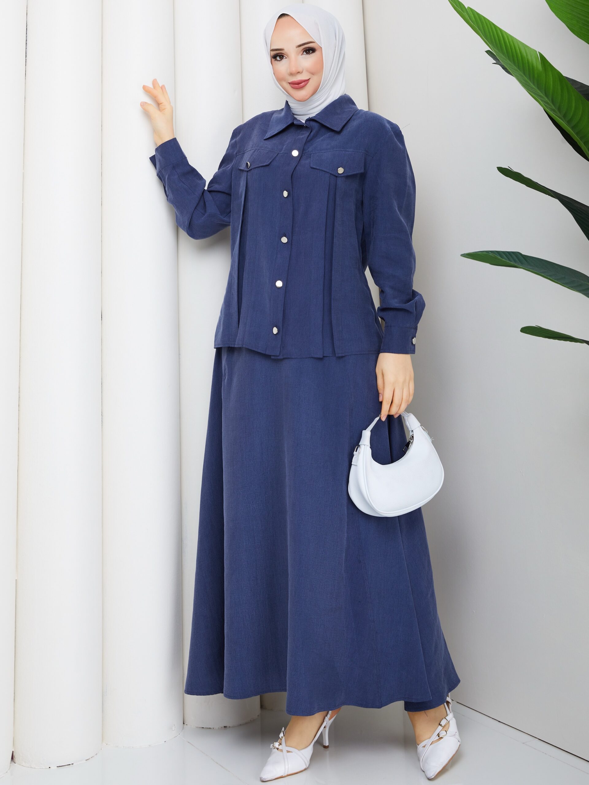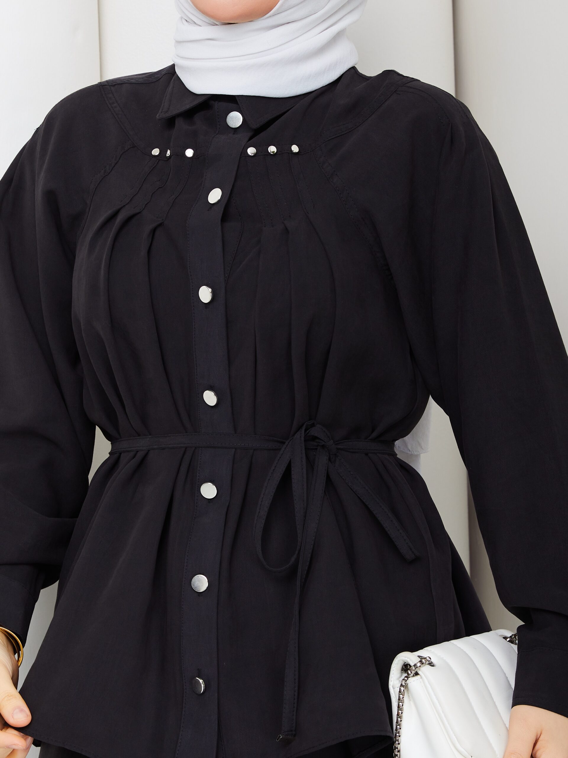 Yaka taşlı tensel kumaş takım antrasıt renk