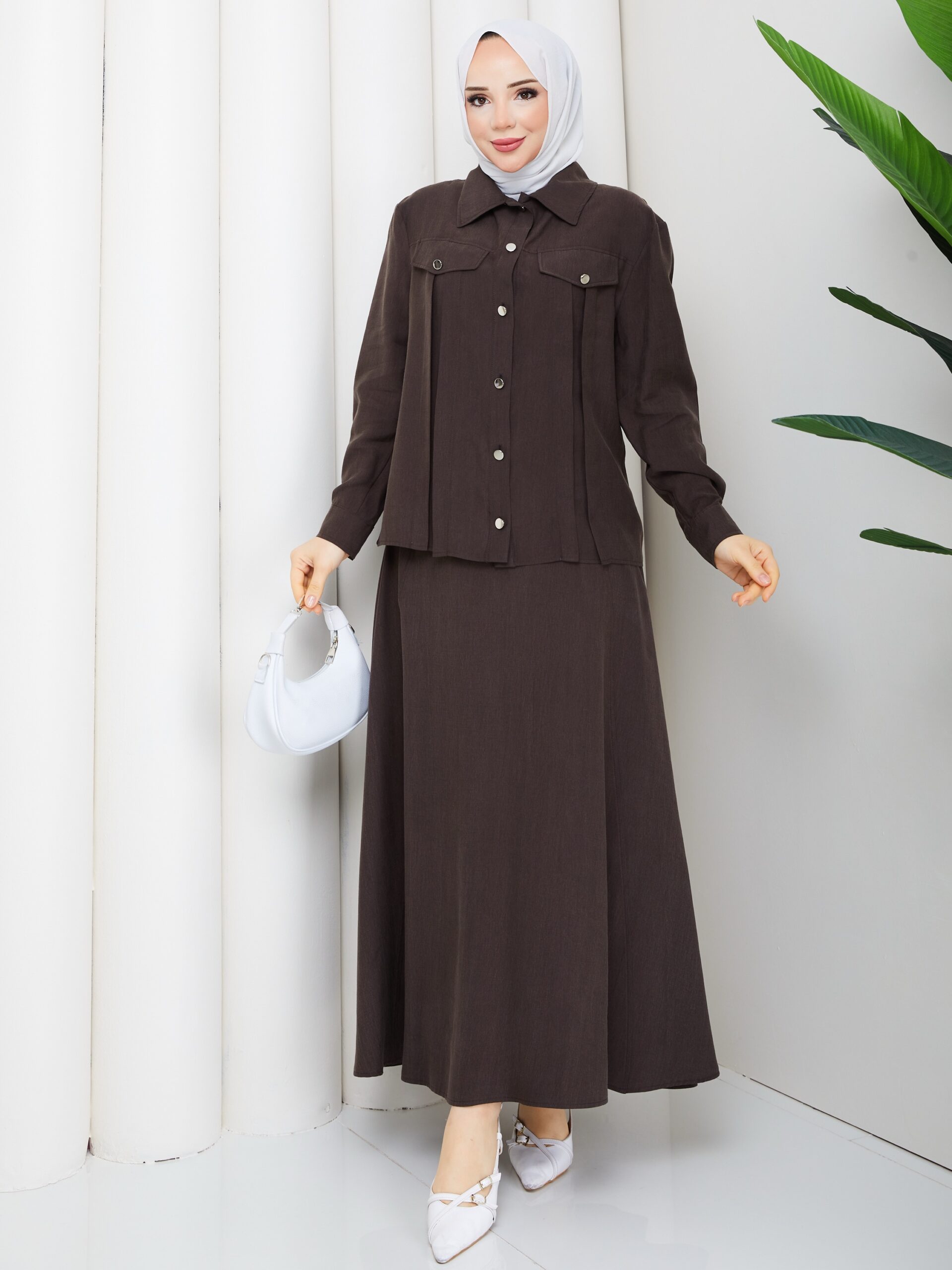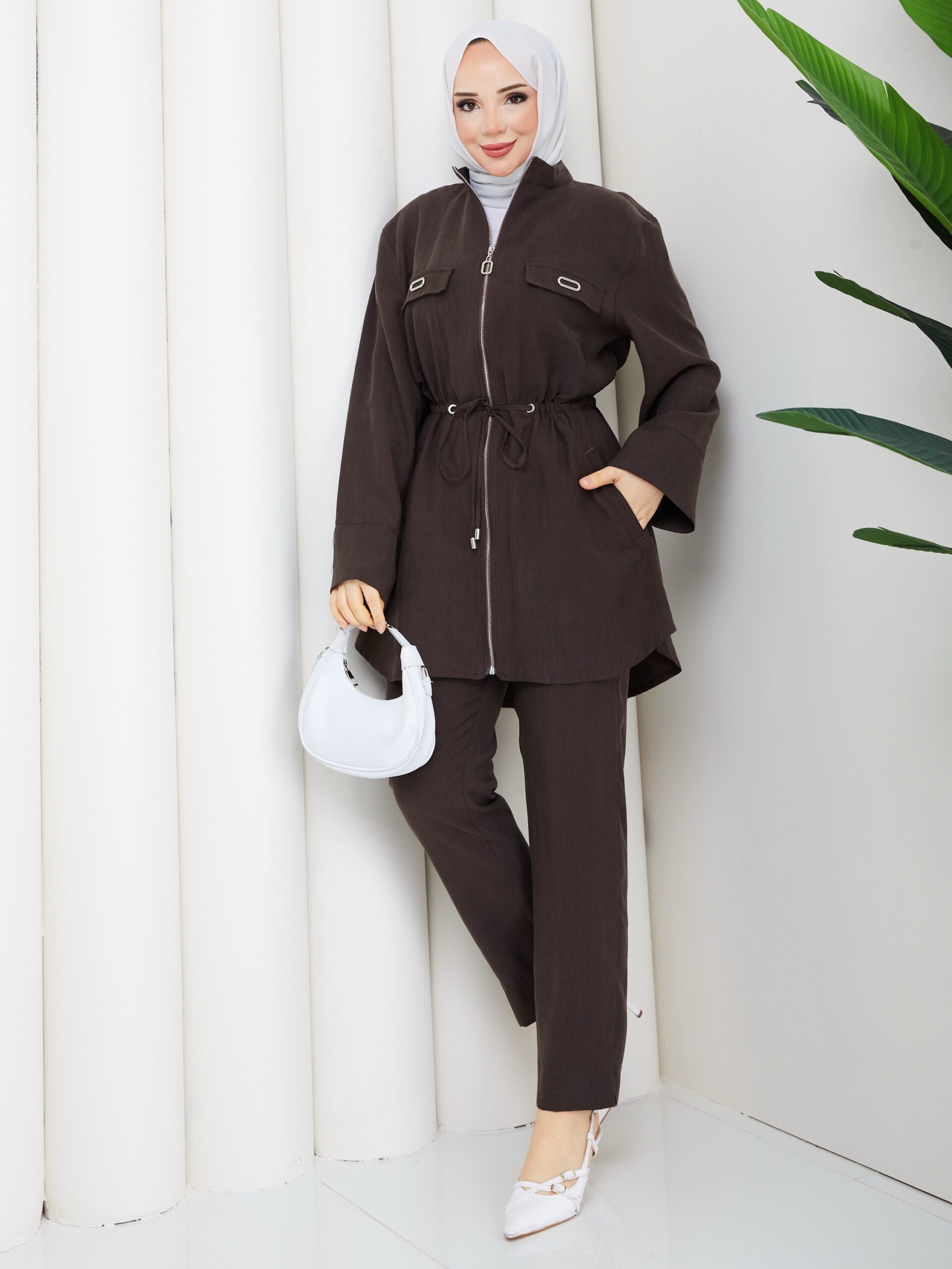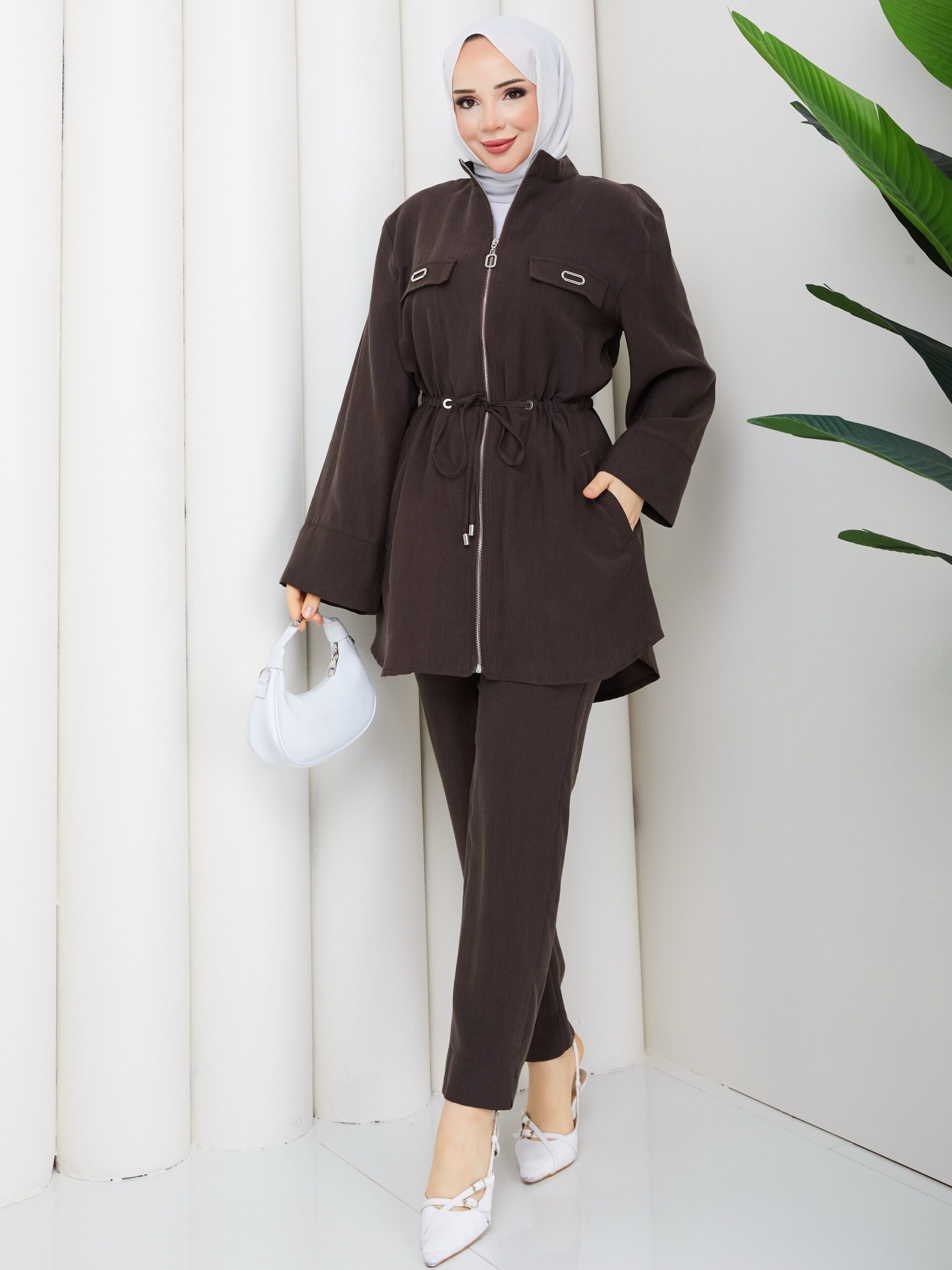 Kahverengı 3lu takım bağlamalı