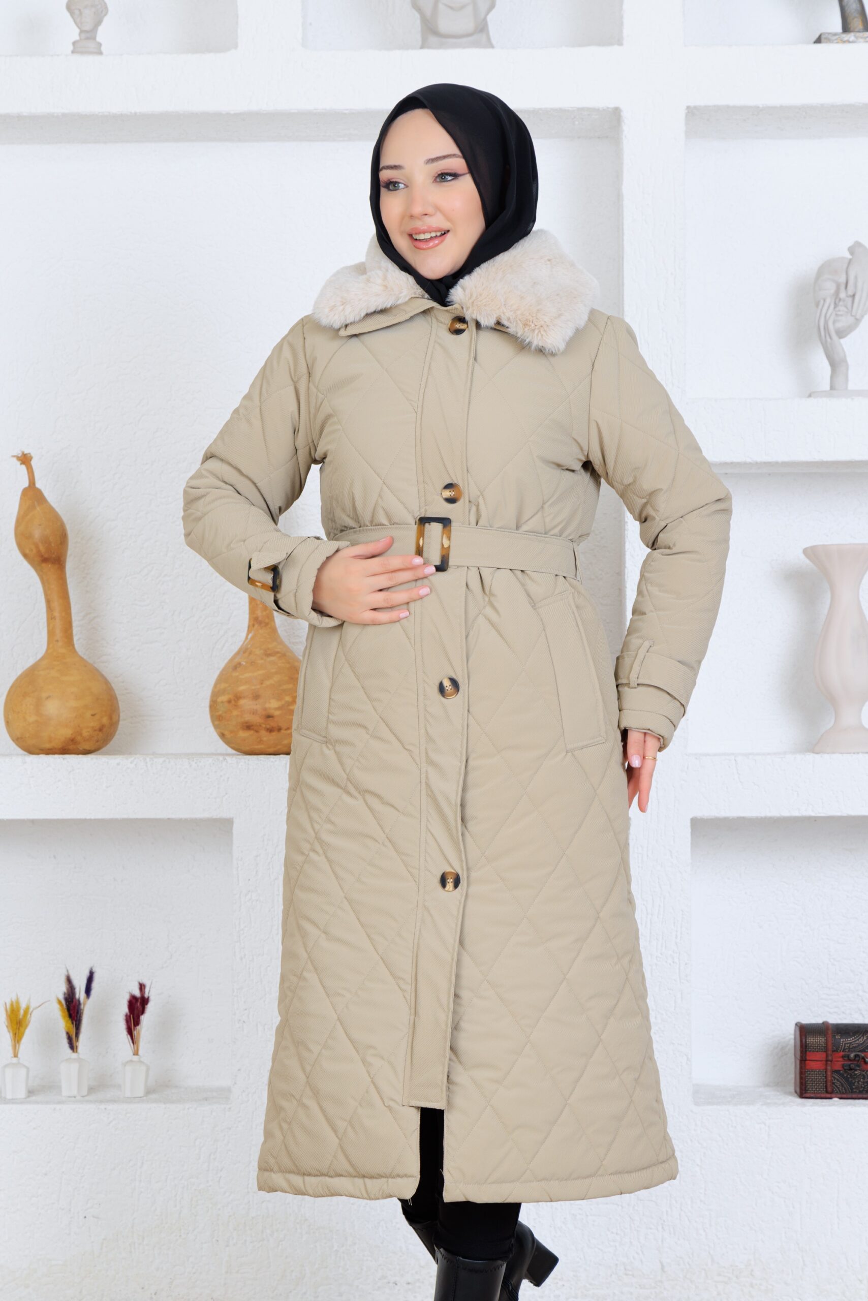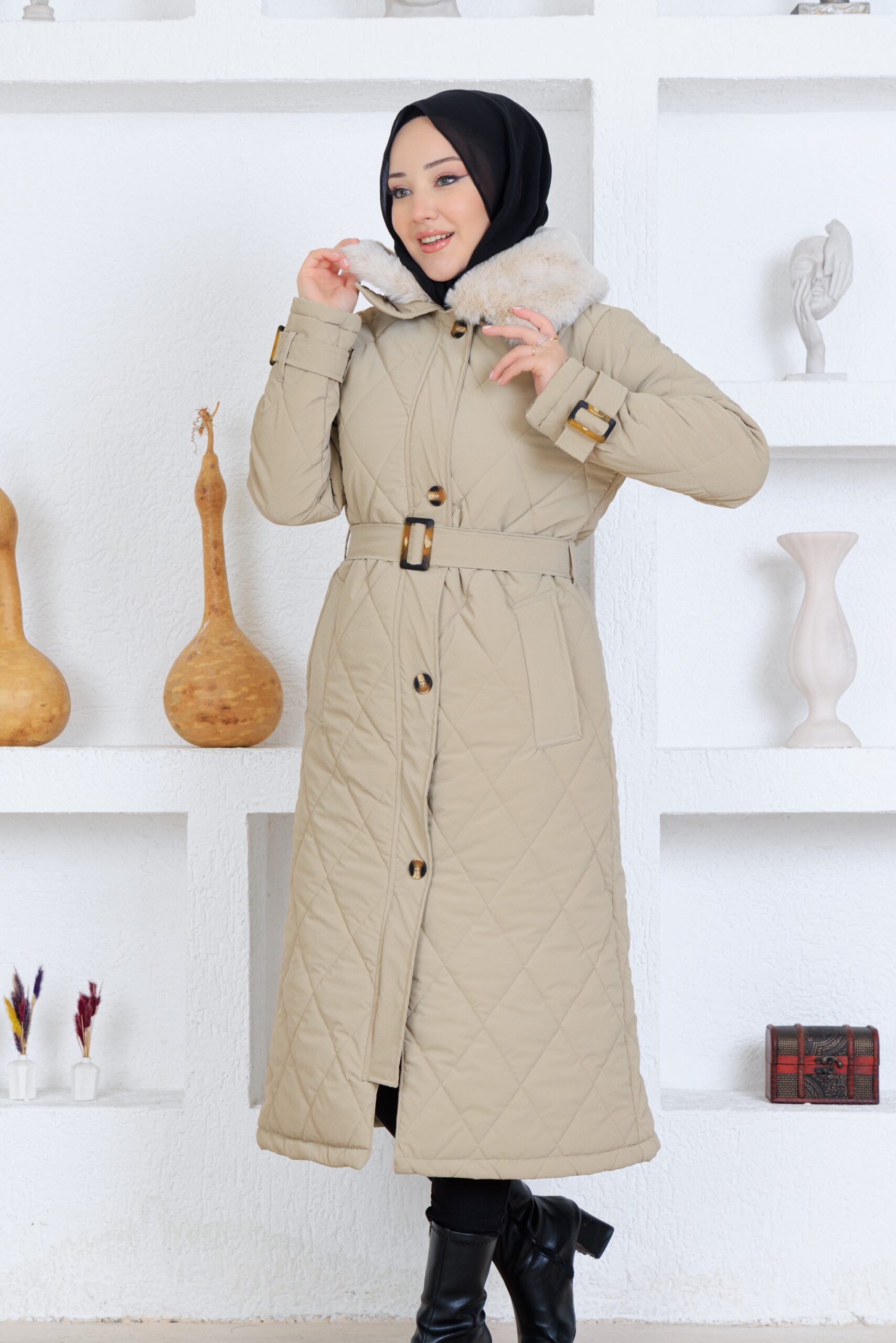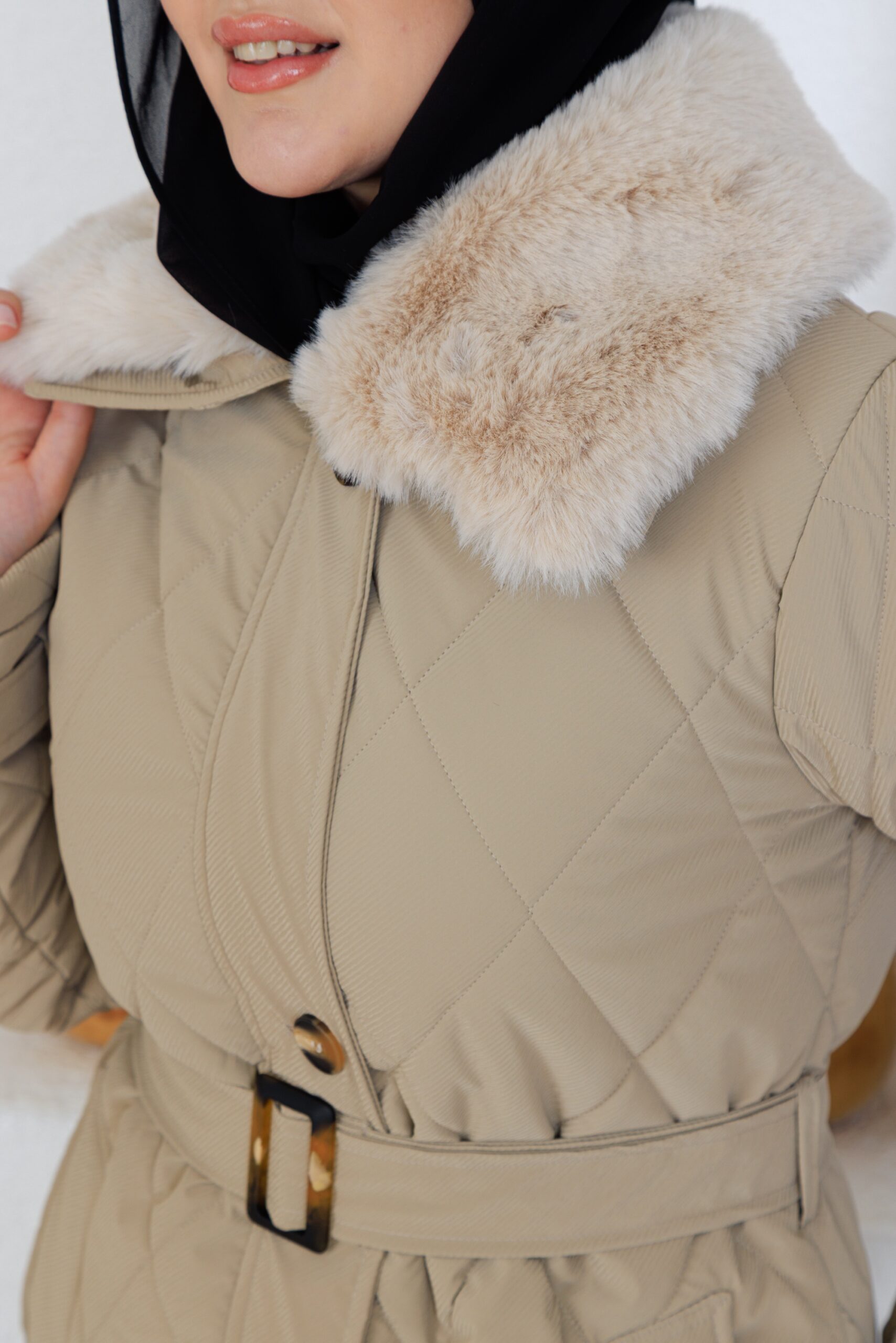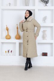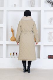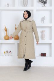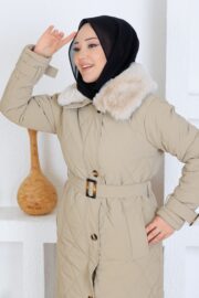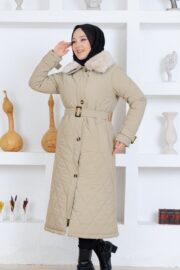 Bej renk kemerlı mont