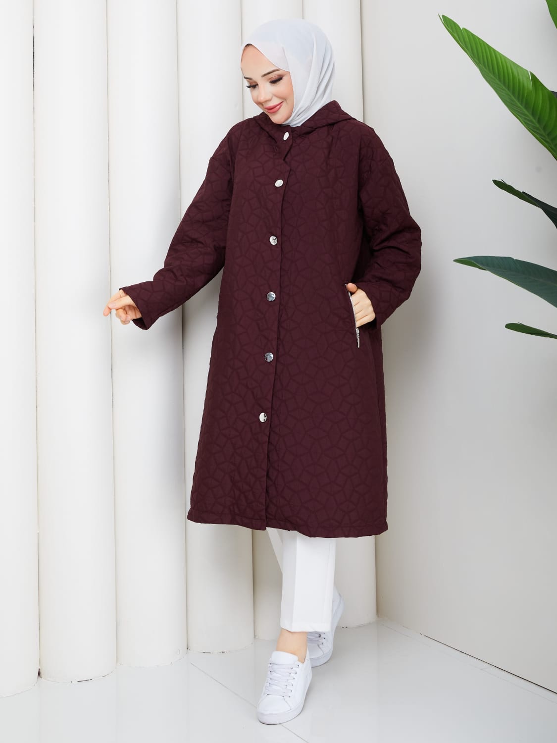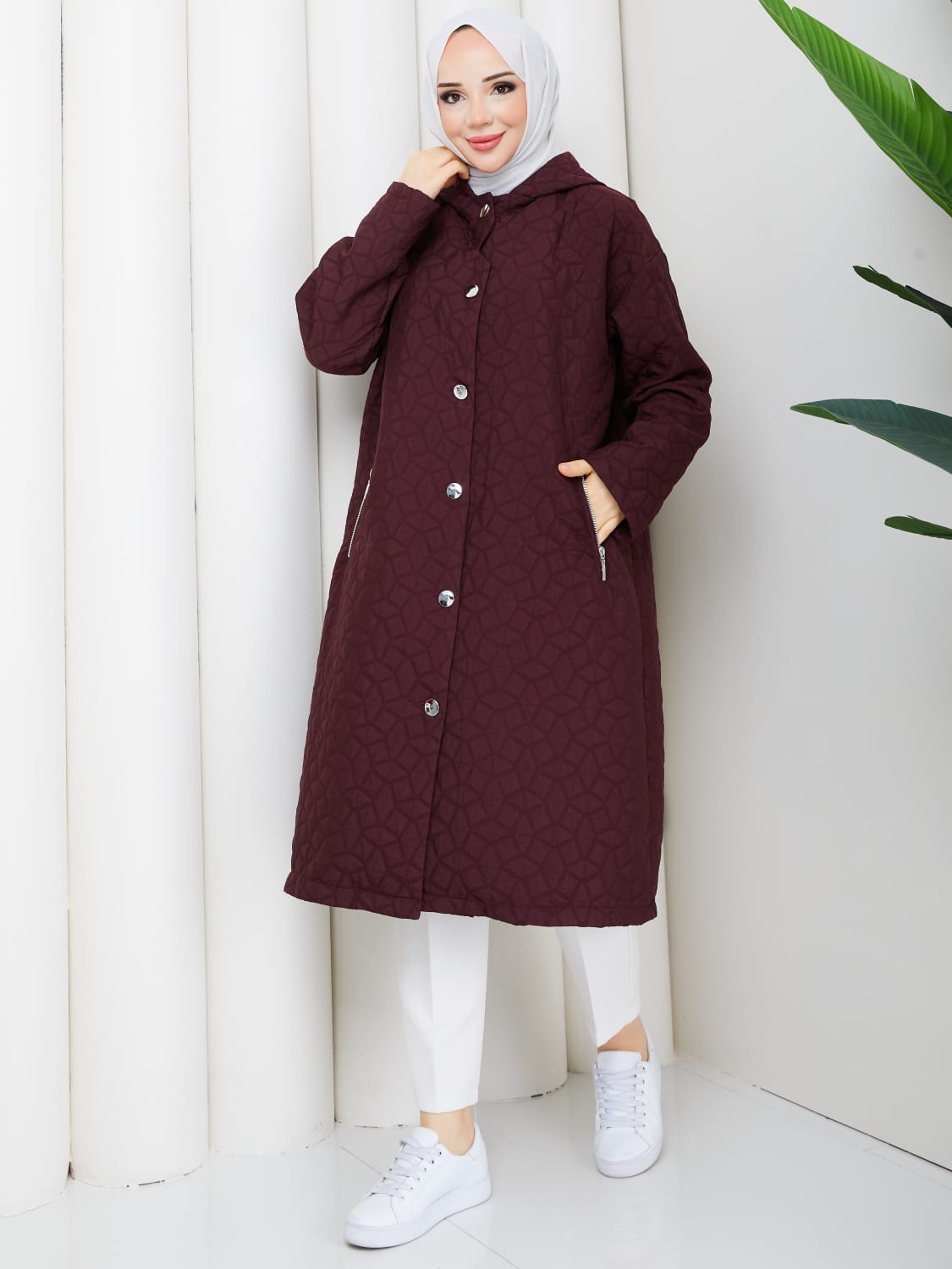 Bordo kapıtone kumaş olan bunurunun kodu 1189