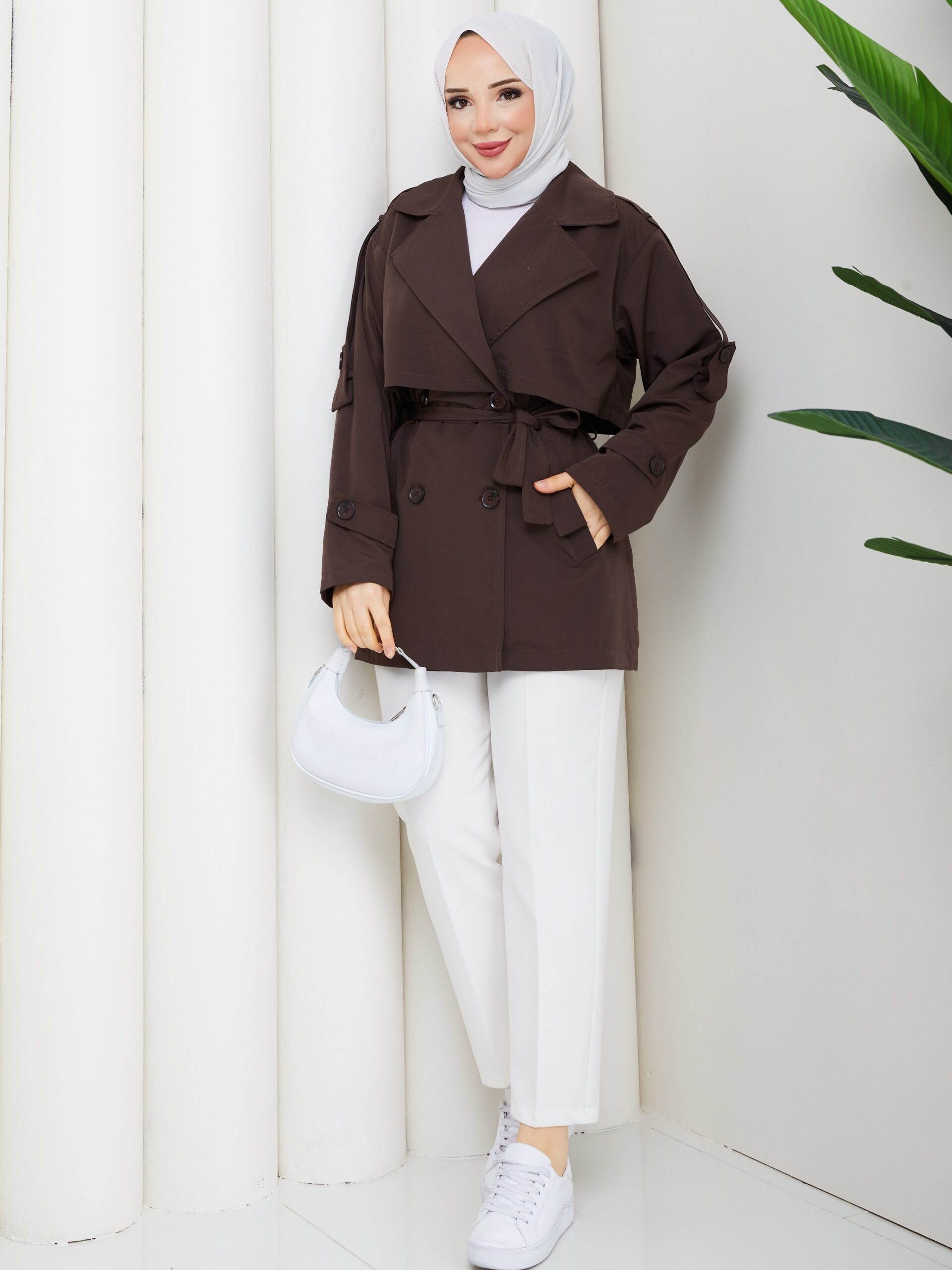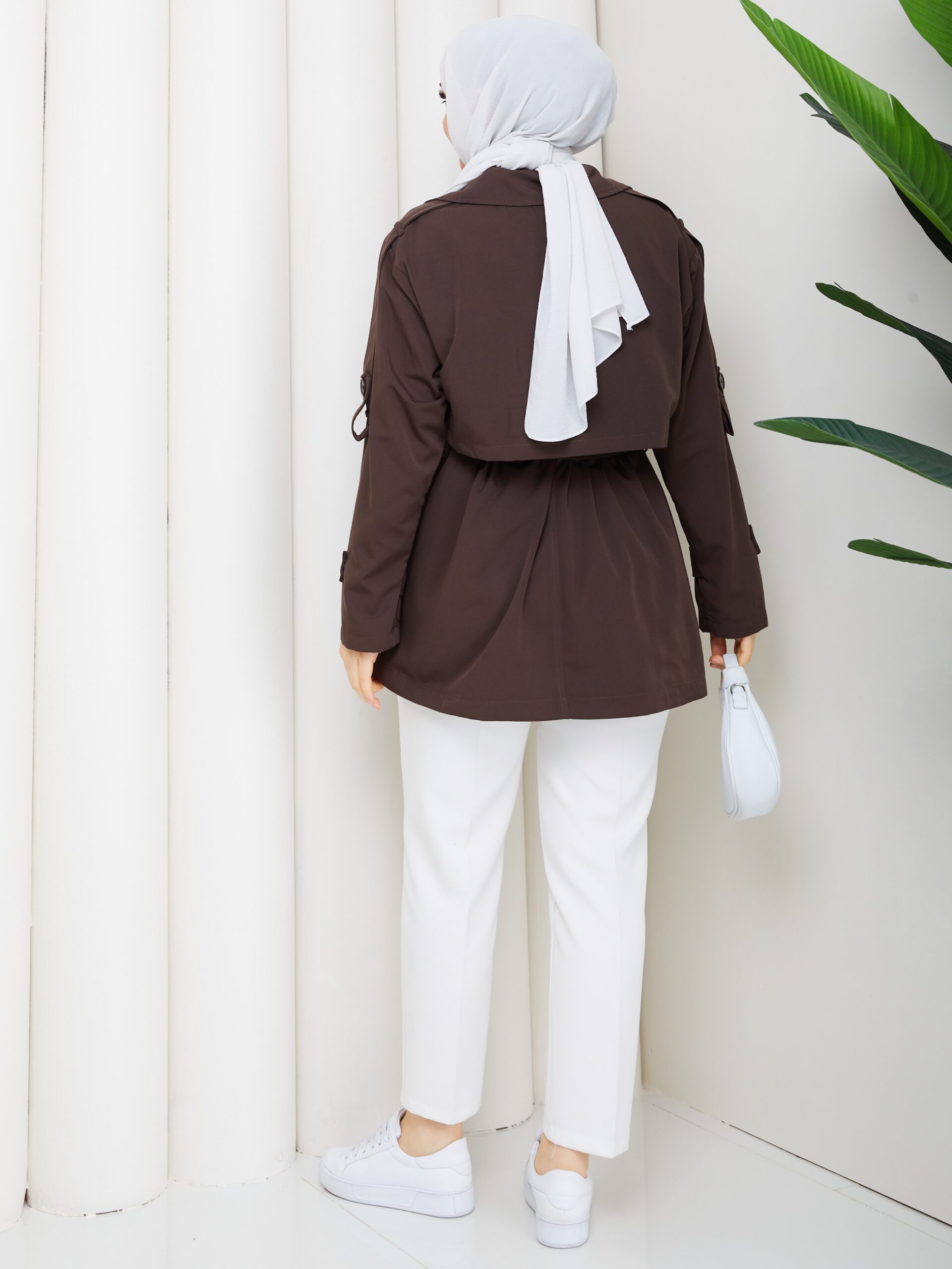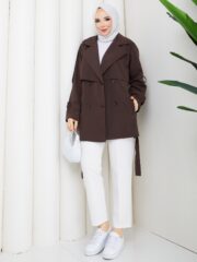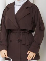 Kahverengı ruzgarlıklı kısa trençkot