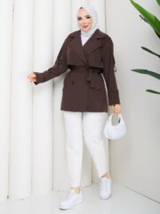 Acı kahve kemerlı mont