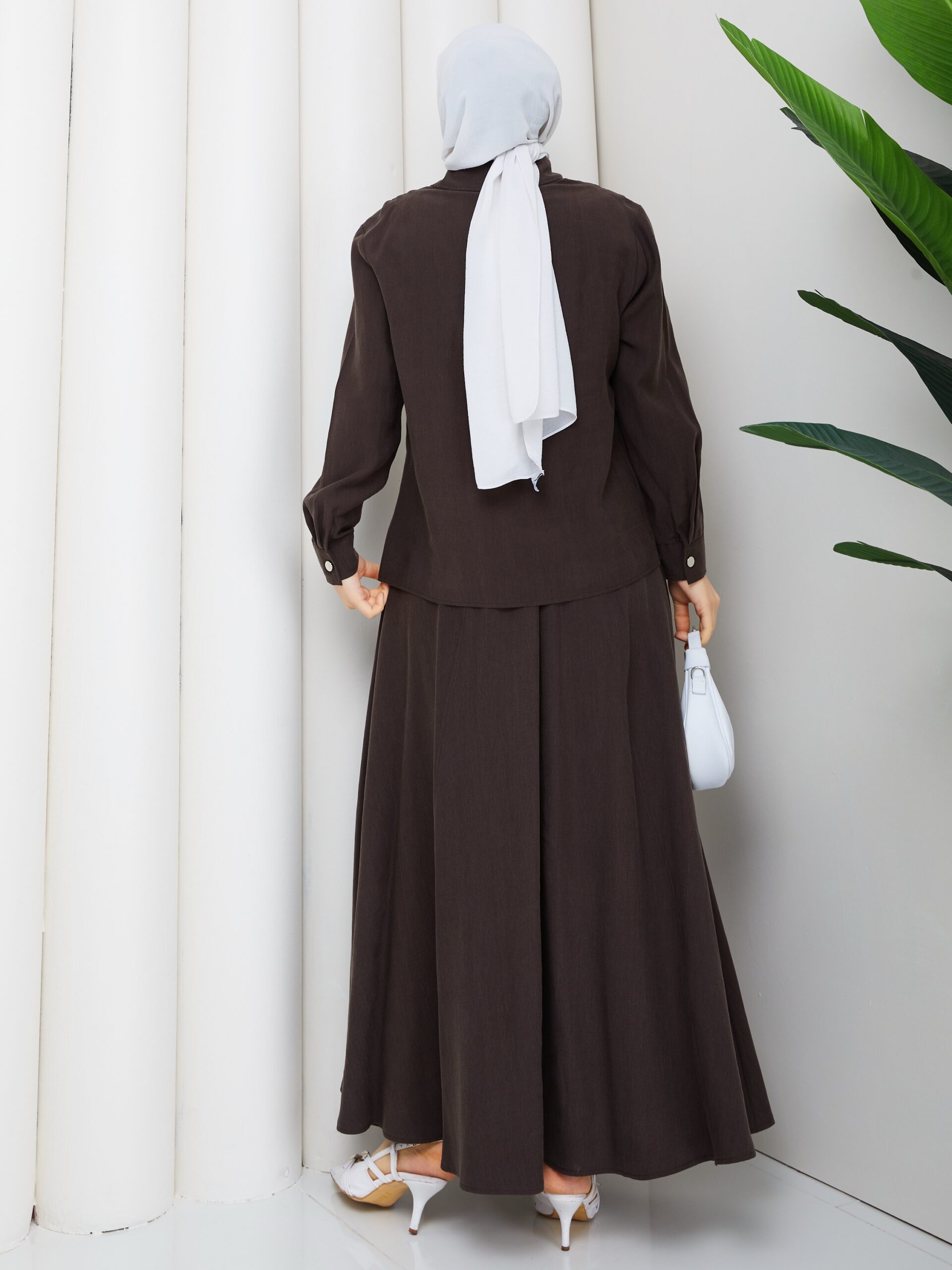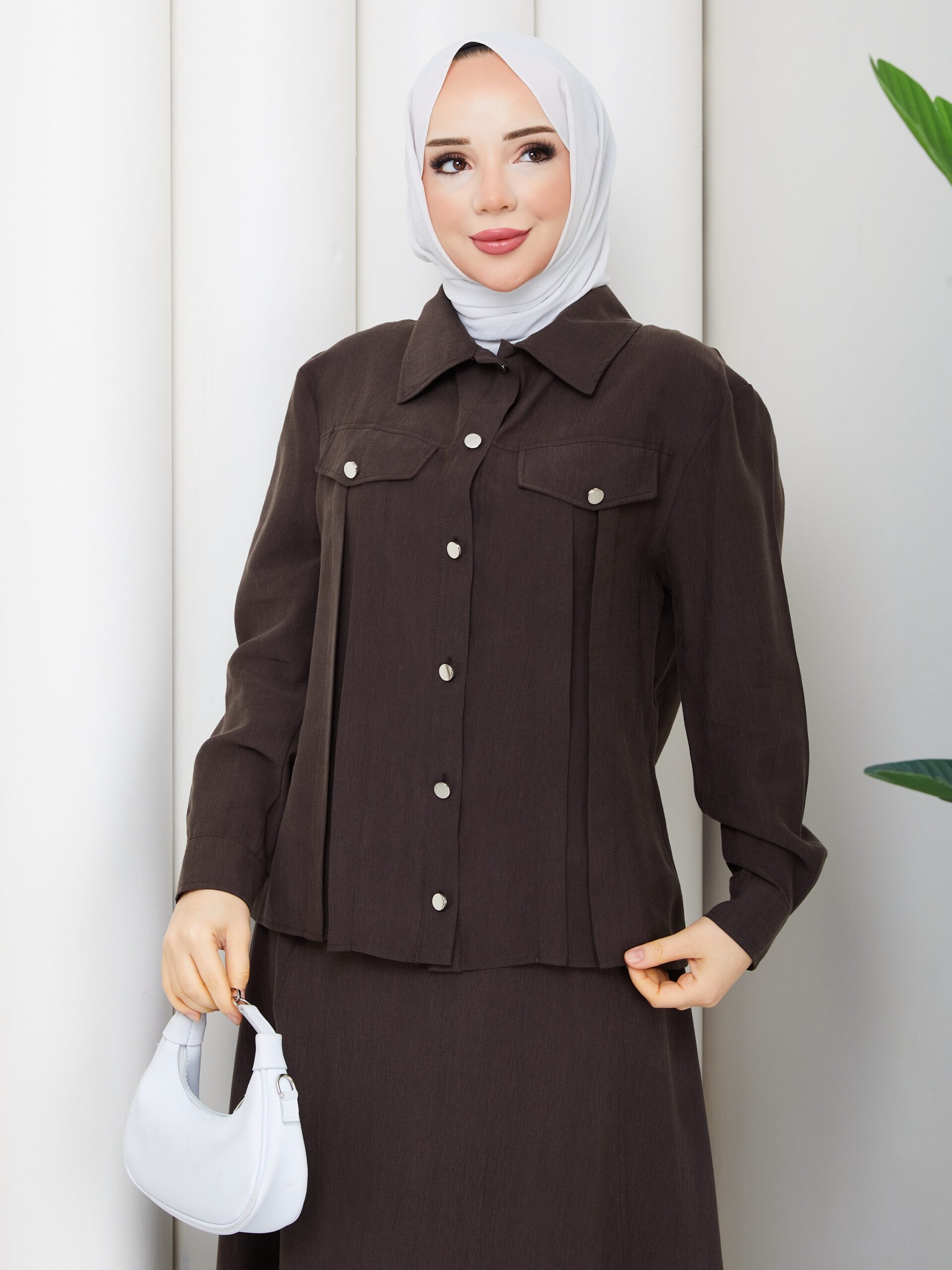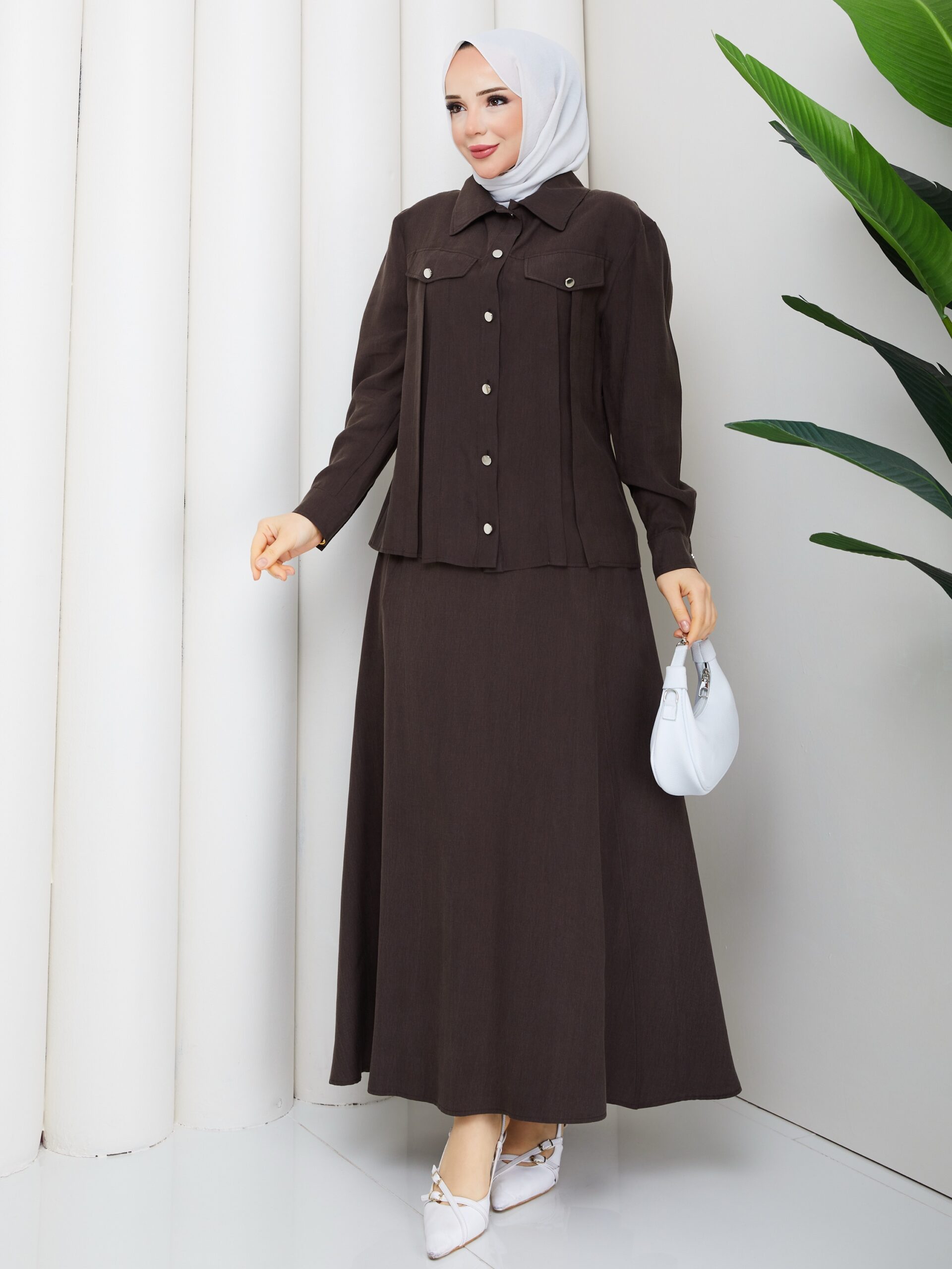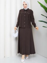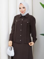 Kahverengı tensel kumaş ıkılı takım