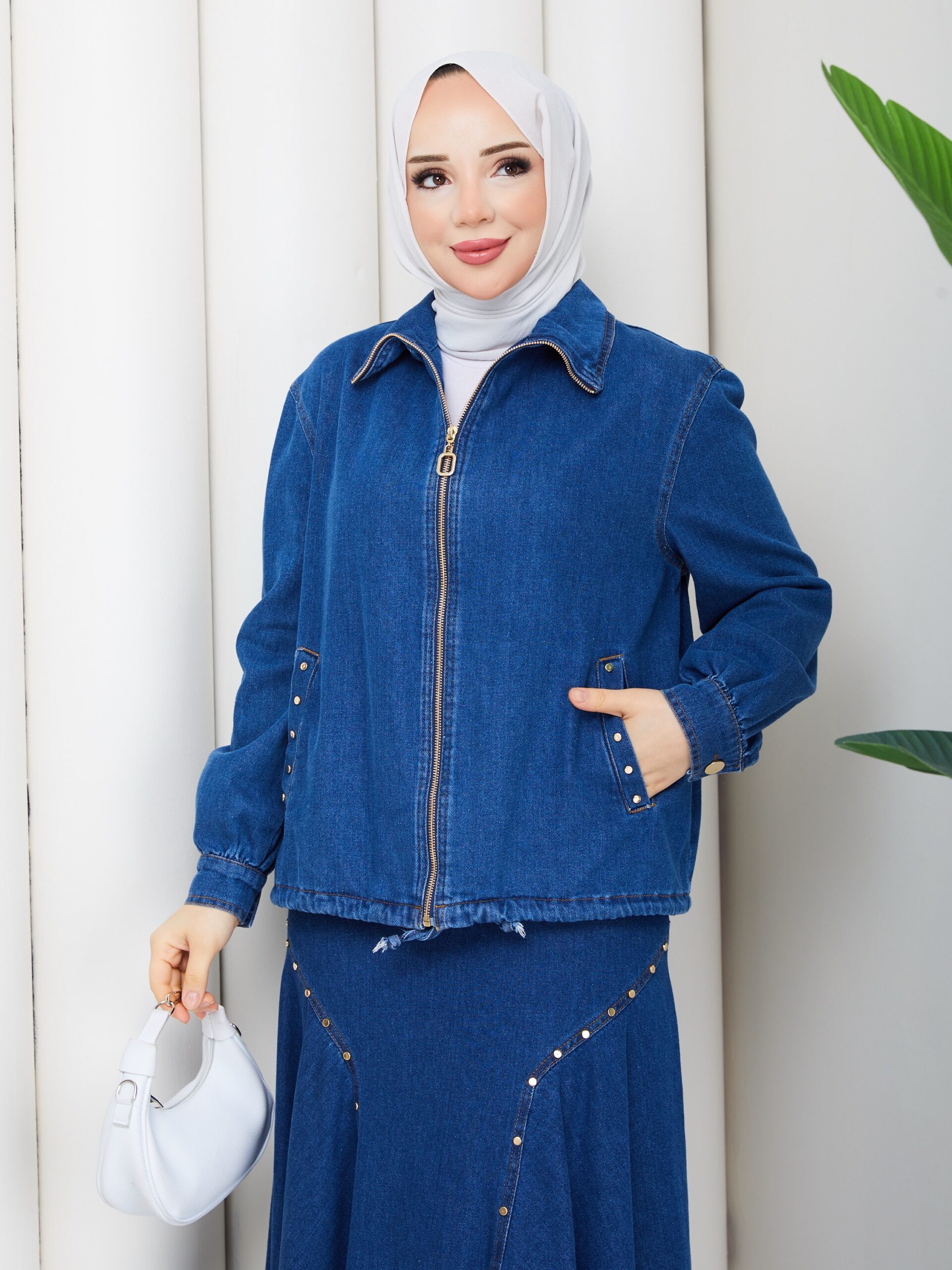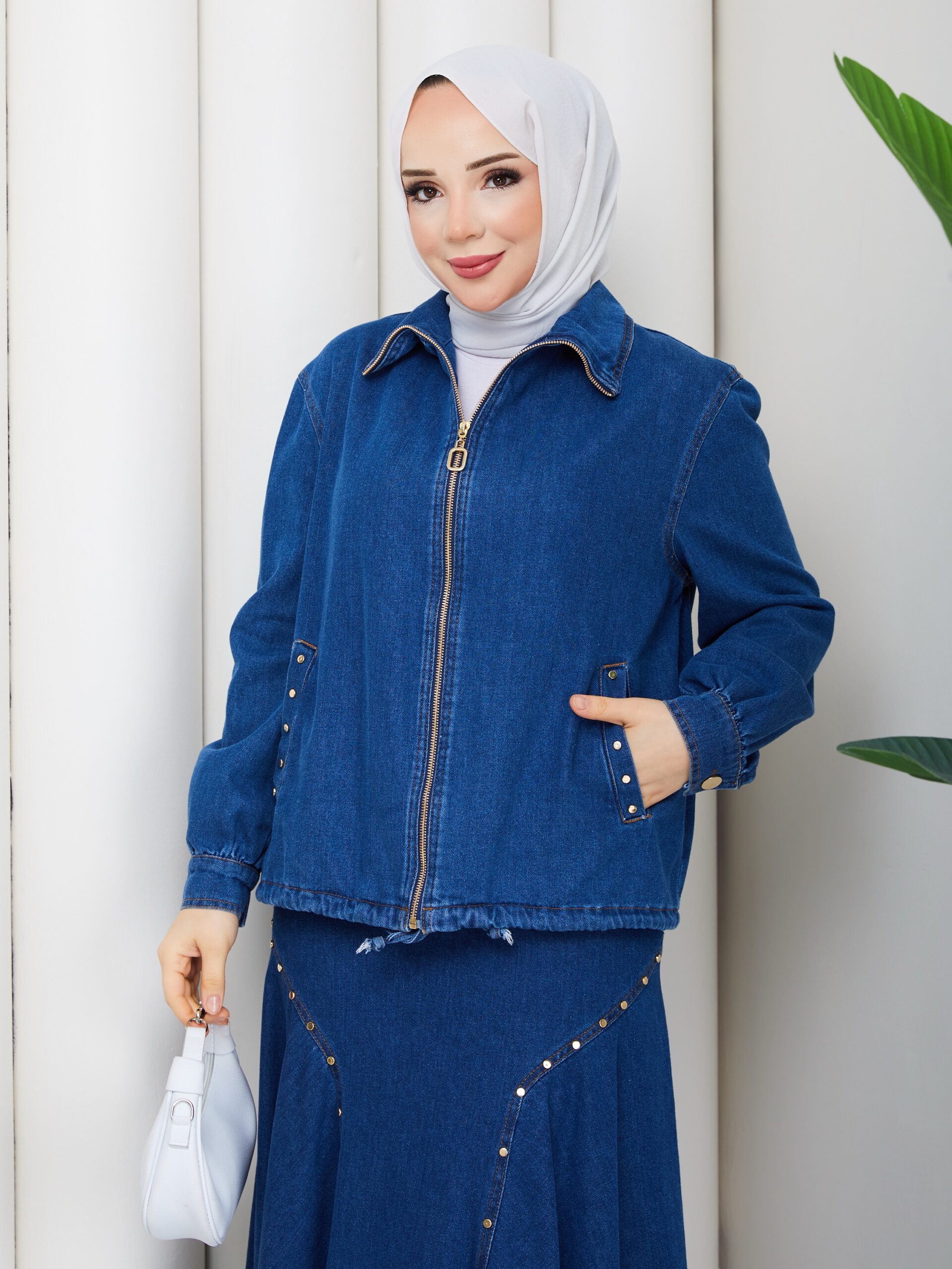 Denim Şıklığı Yeniden Tanımlandı: İkili Kot Etek-Ceket Takımı
