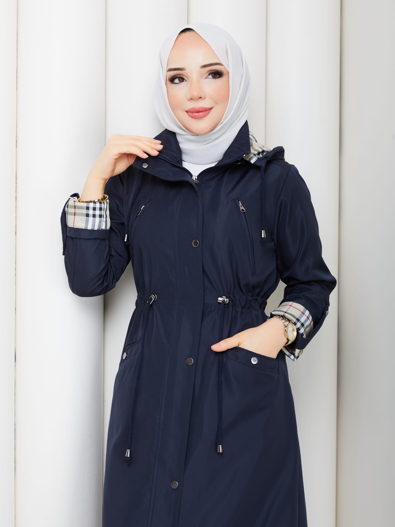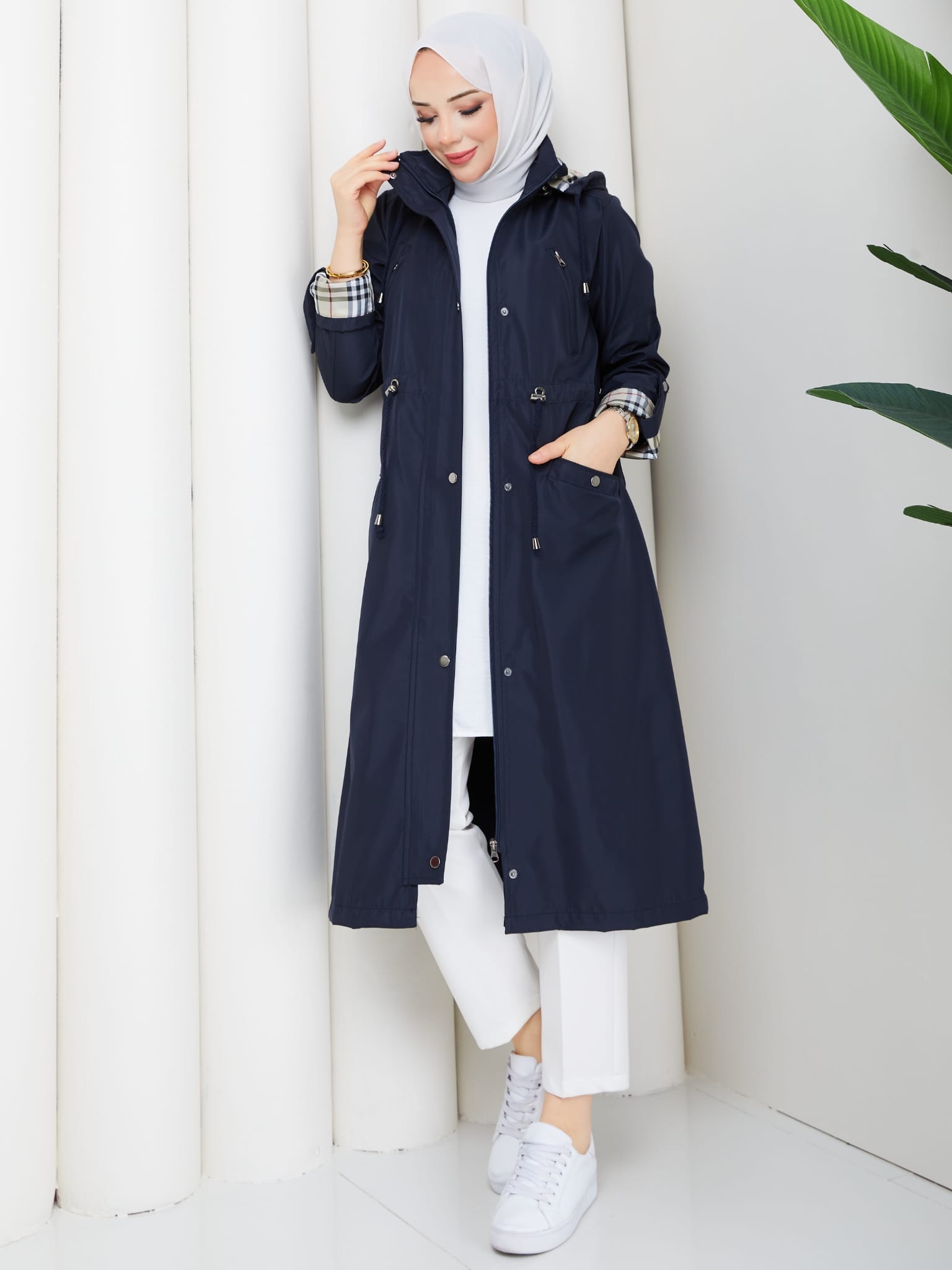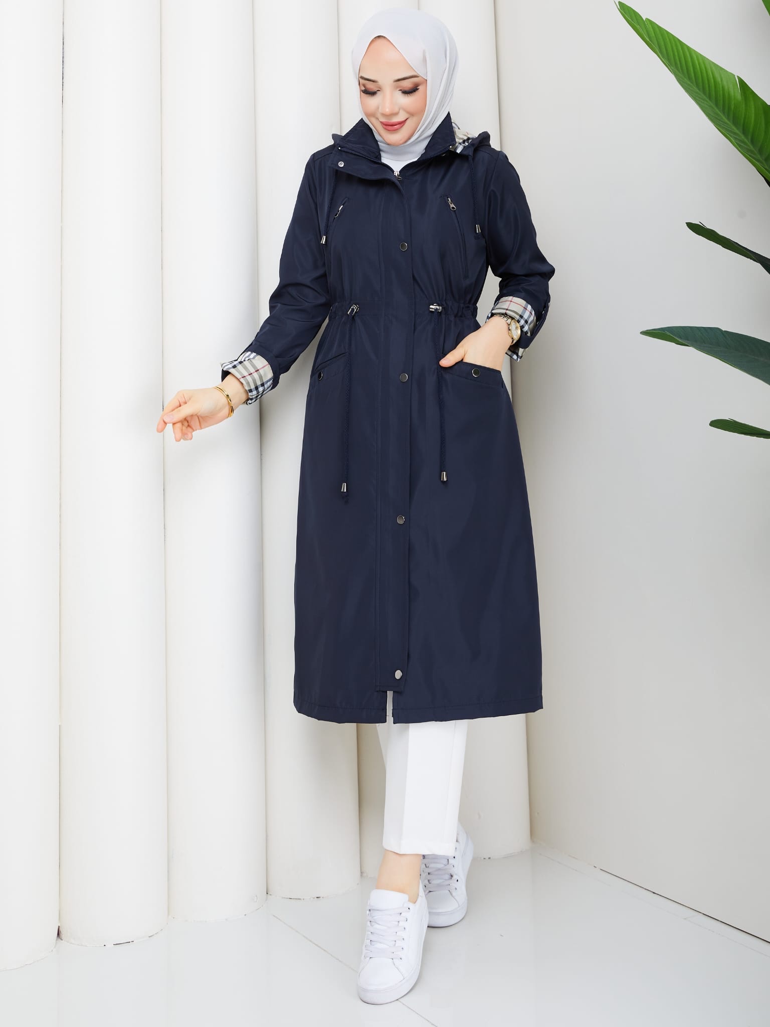 Zarafetin en sağlam hali. Bonded kumaşın kendine has tok duruşu ve rüzgara karşı dayanıklı yapısı, iç kısımdaki klasik kareli astarla buluşarak bahar stilinize seviye atlatıyor. 110 cm uzunluğuyla modern bir silüet çizen bu model, gardırobunuzun en uzun ömürlü parçası olmaya aday.
