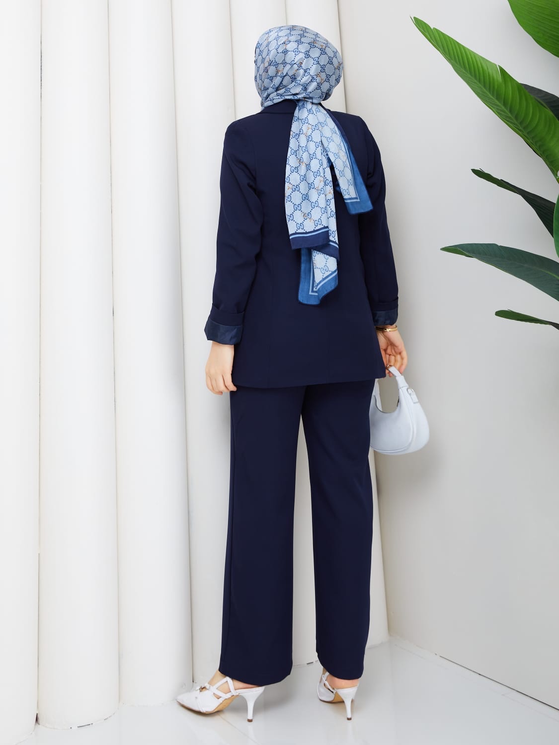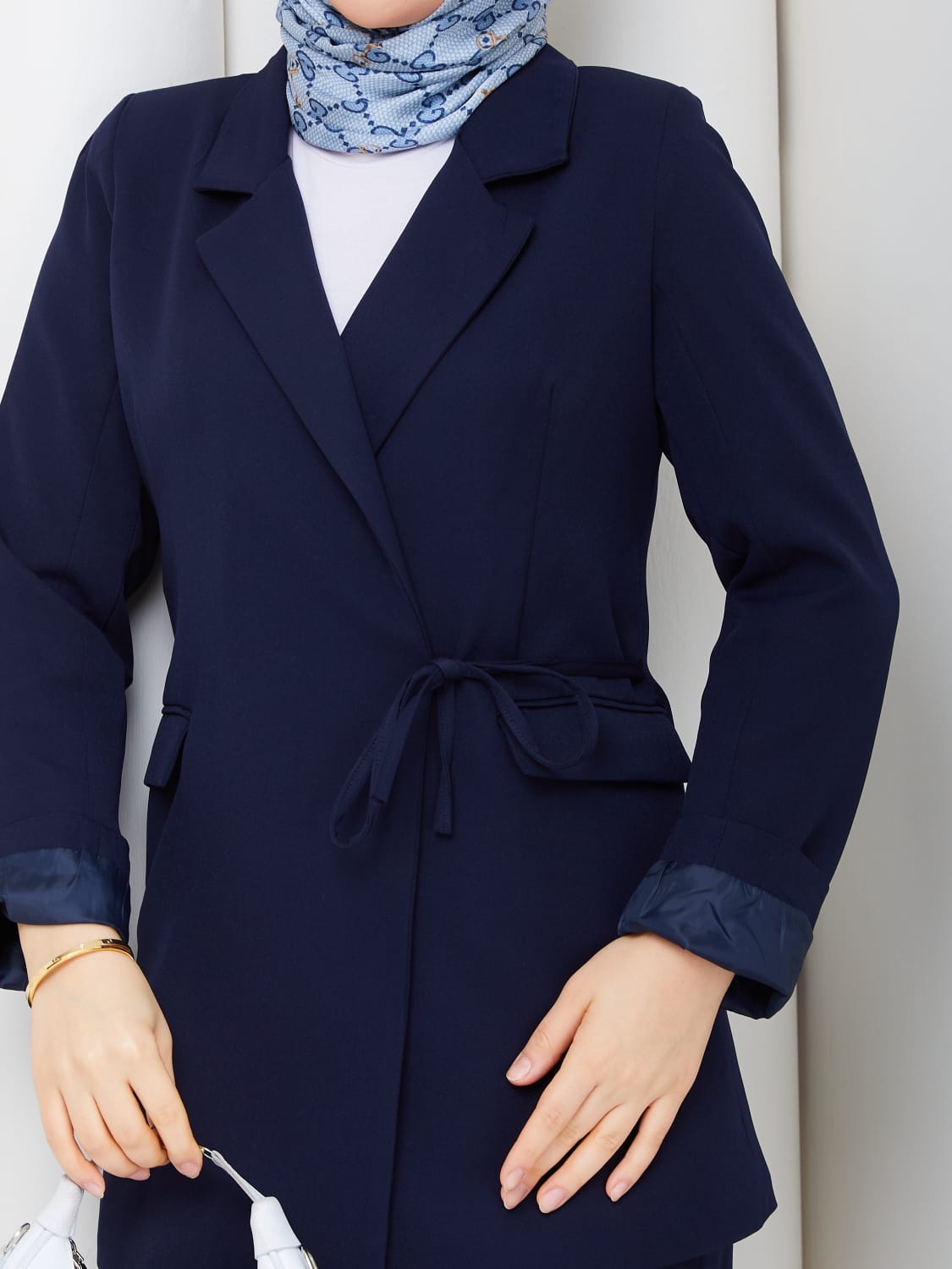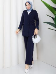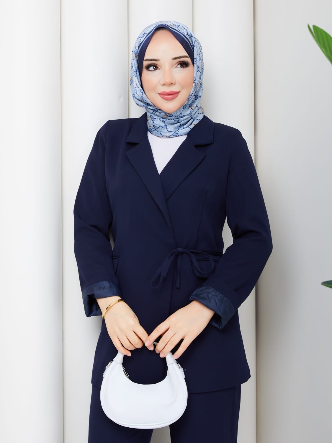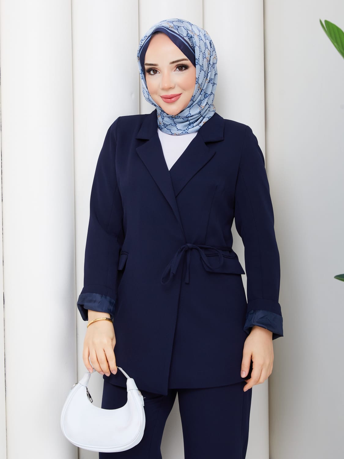 Lacıvert takım double kumaş ceketı önden bağlama detaylı bu urunun kodu 1190
