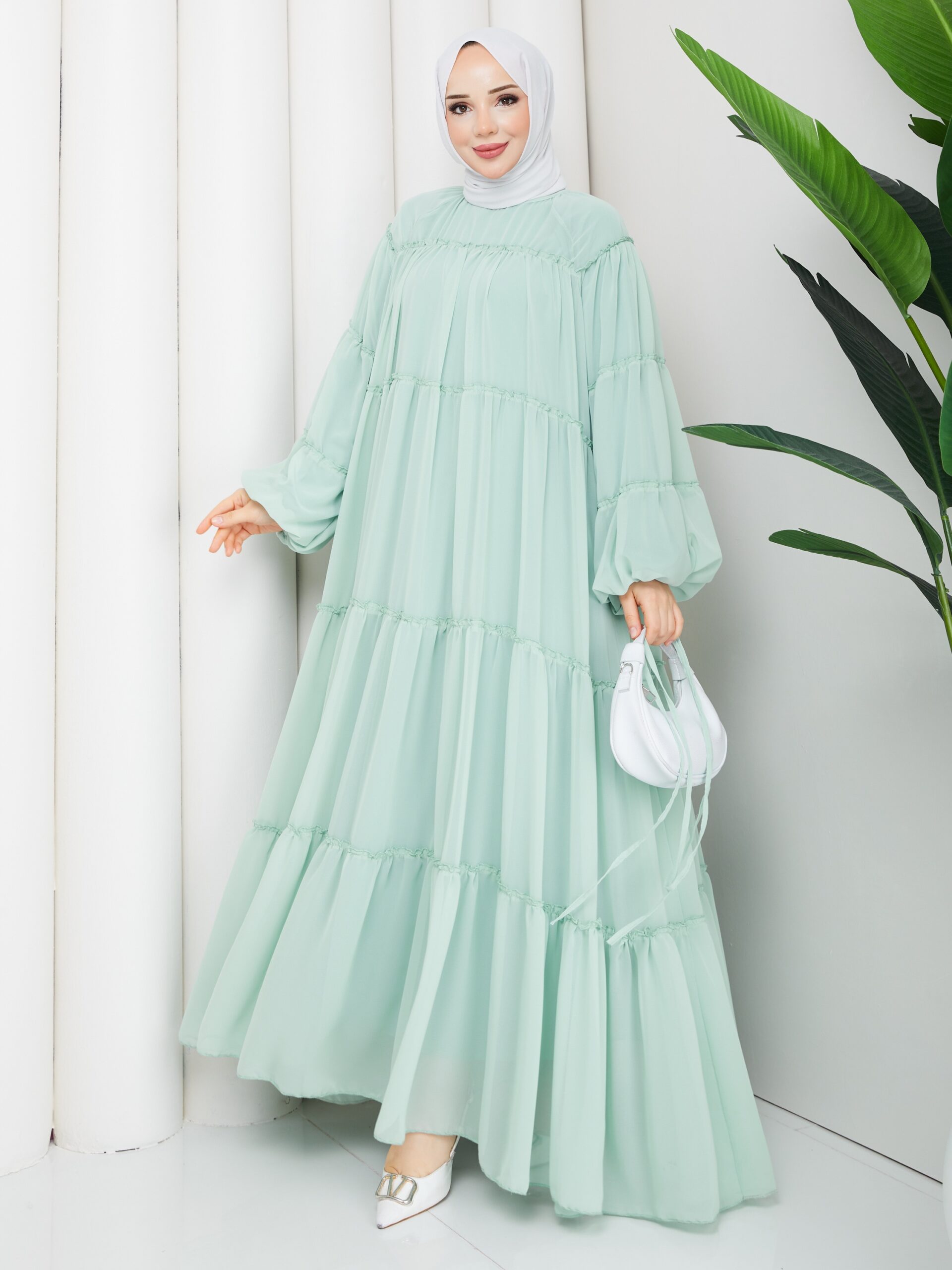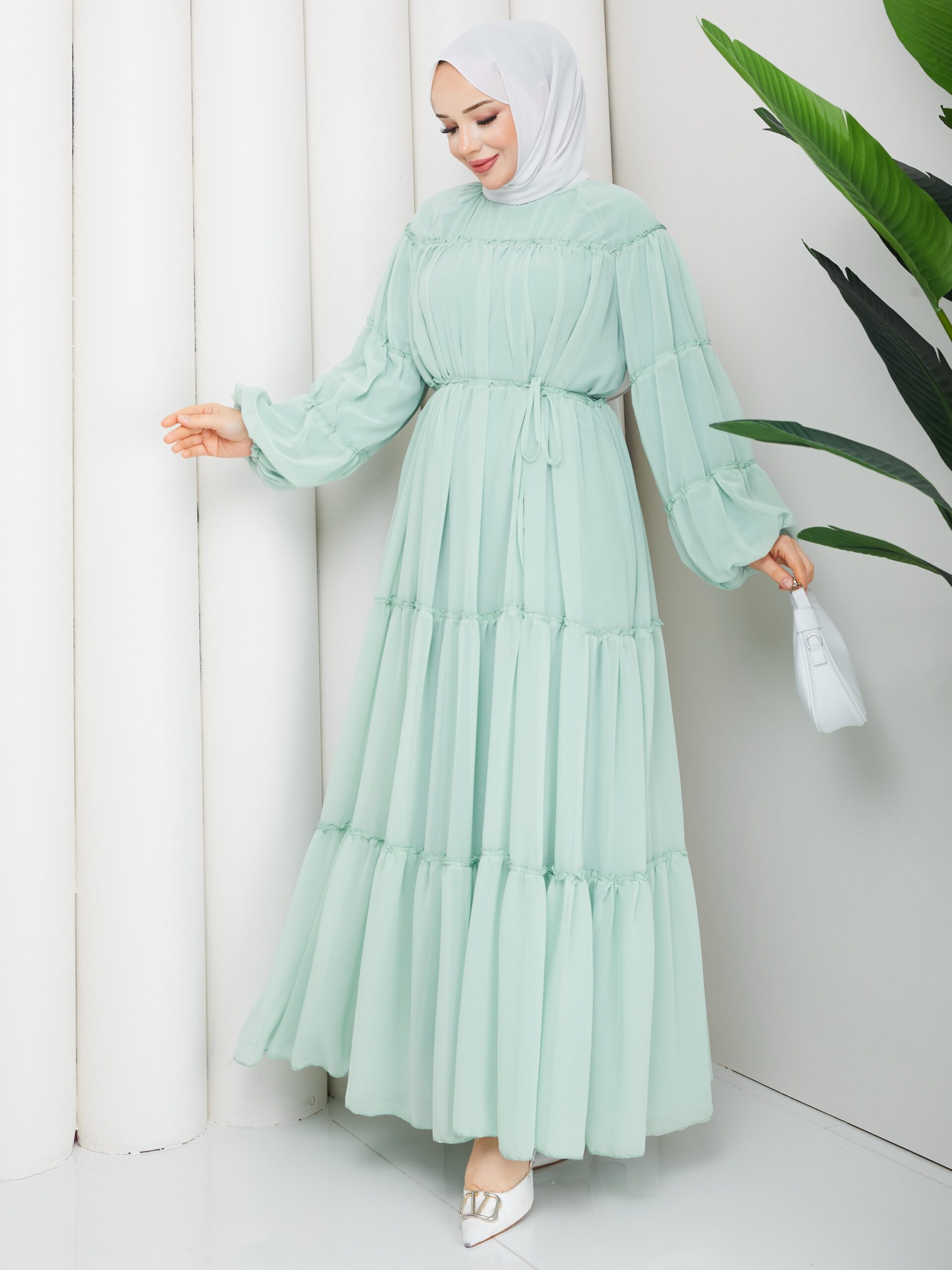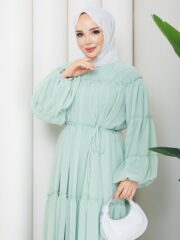 Mint yesılı sıfon elbise