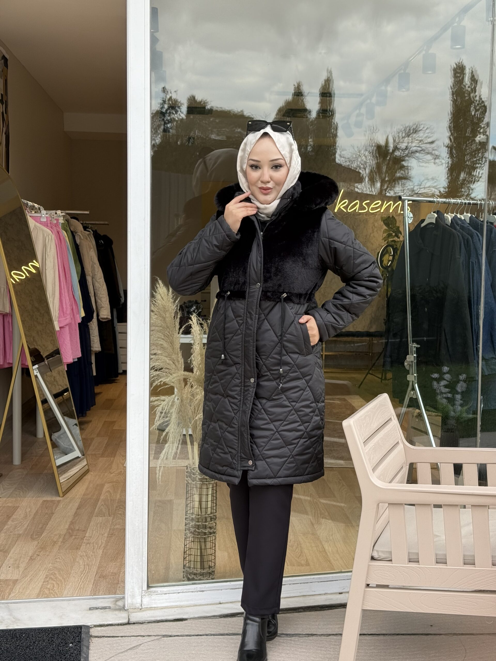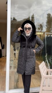 Onu kürk detaylı mont kış aylarının vazgecılmez urunu