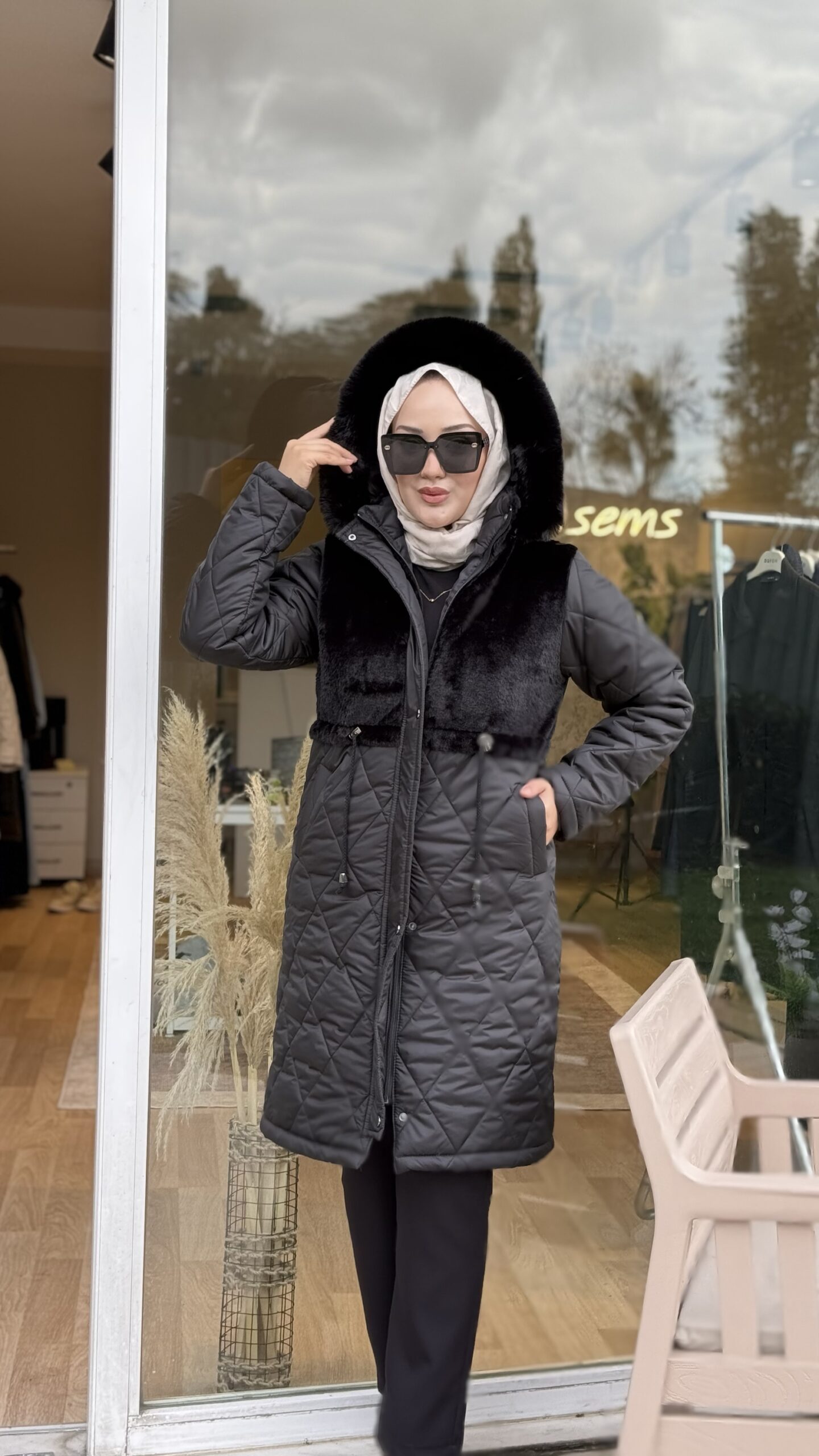 On kürklü mont sıyah