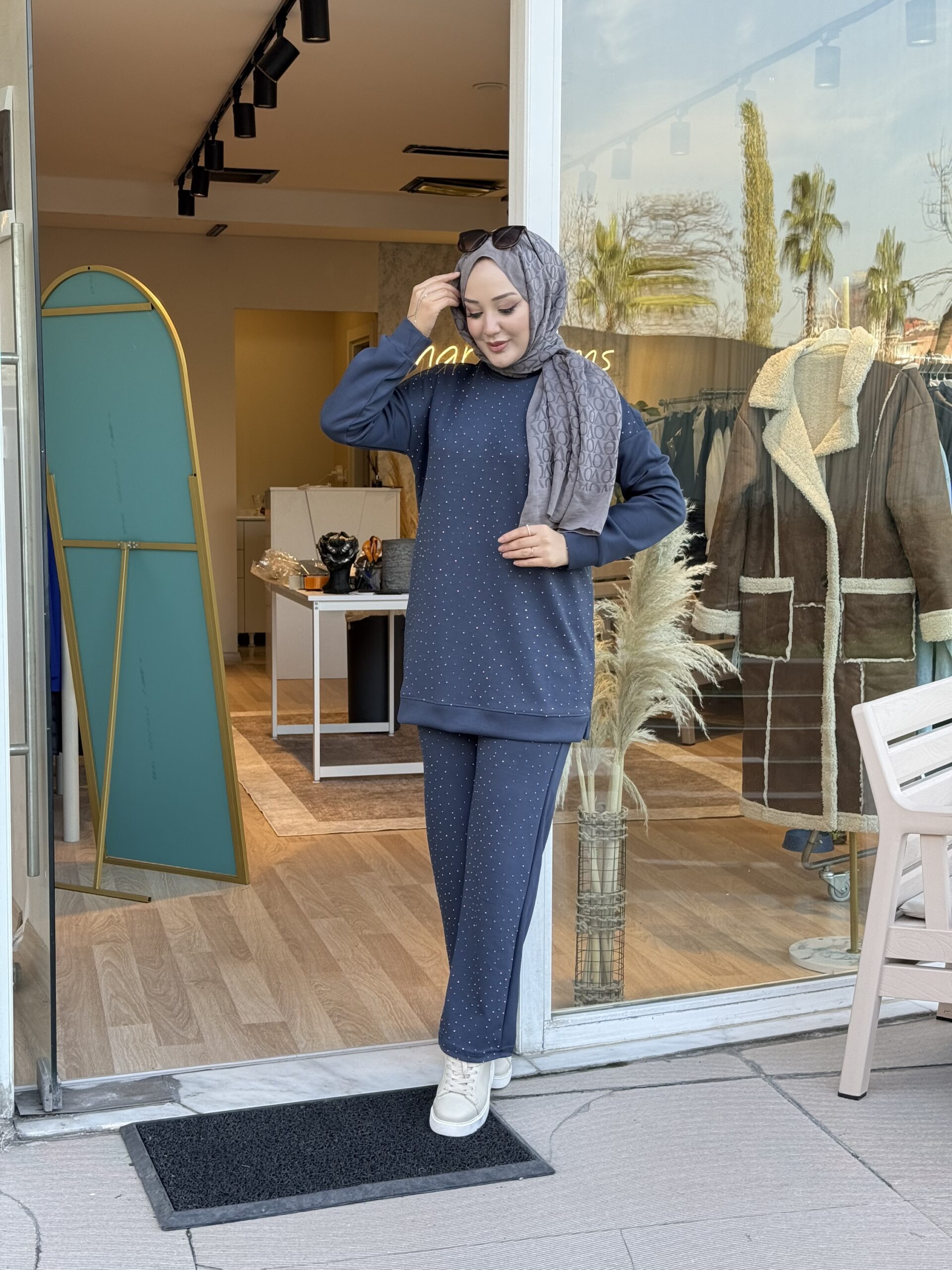 Bu harıka Oysho kumaş olan takımın kumaşını çok seveceksınız renk grı