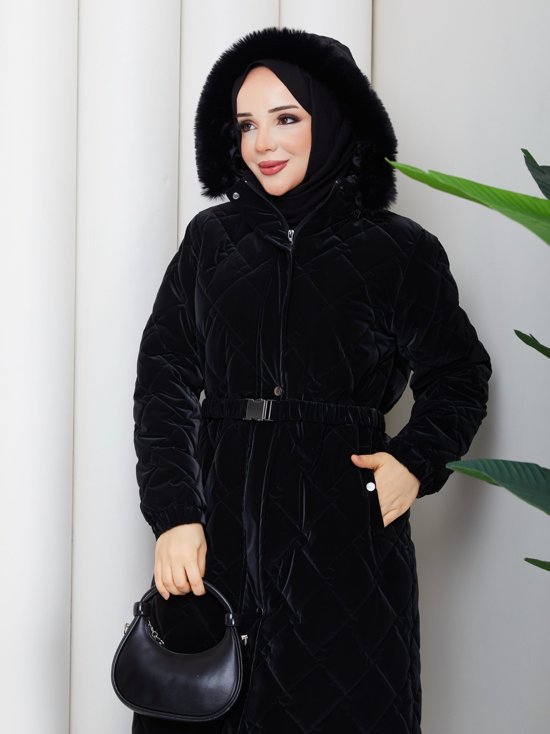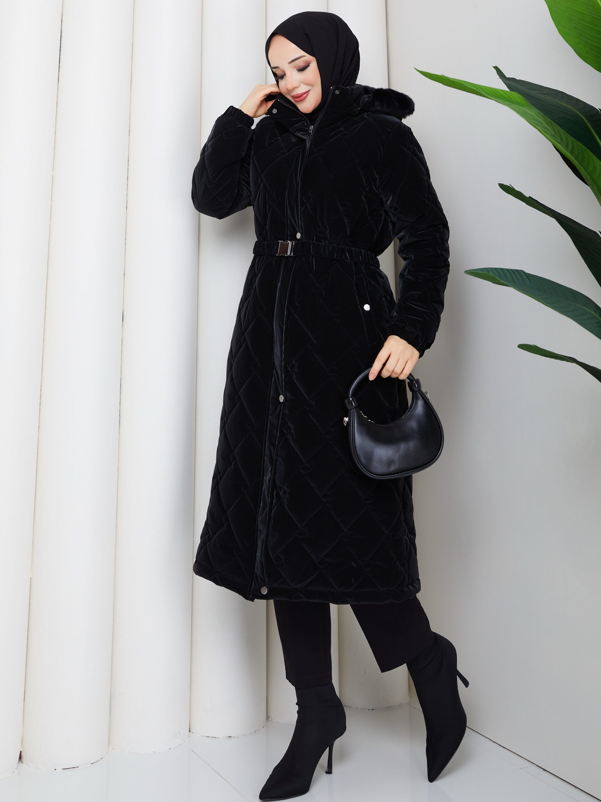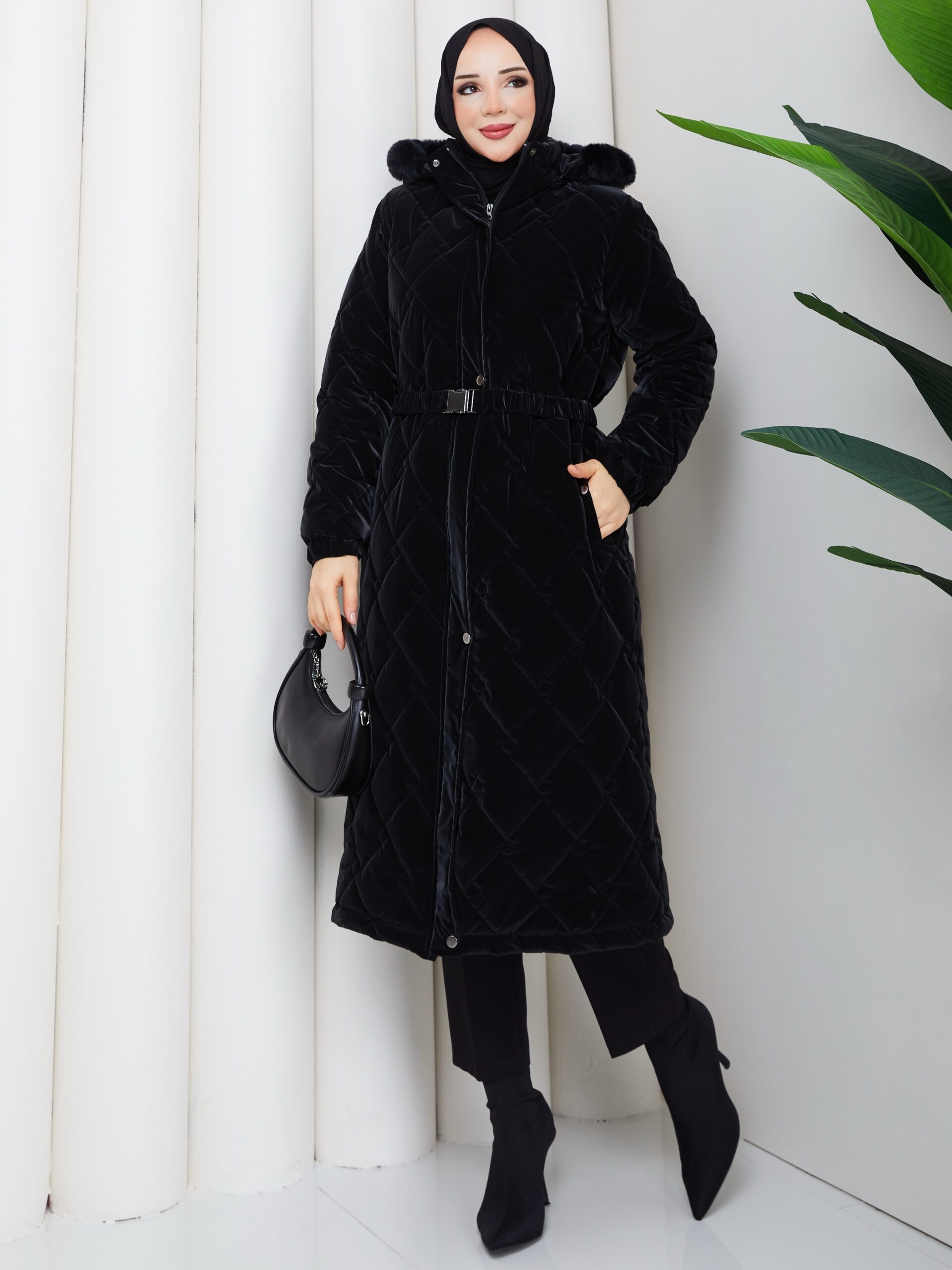 Sıyah nova kumaş kemerlı