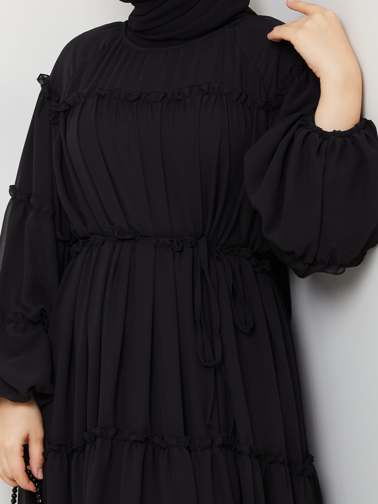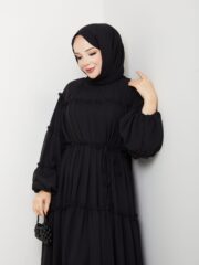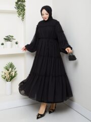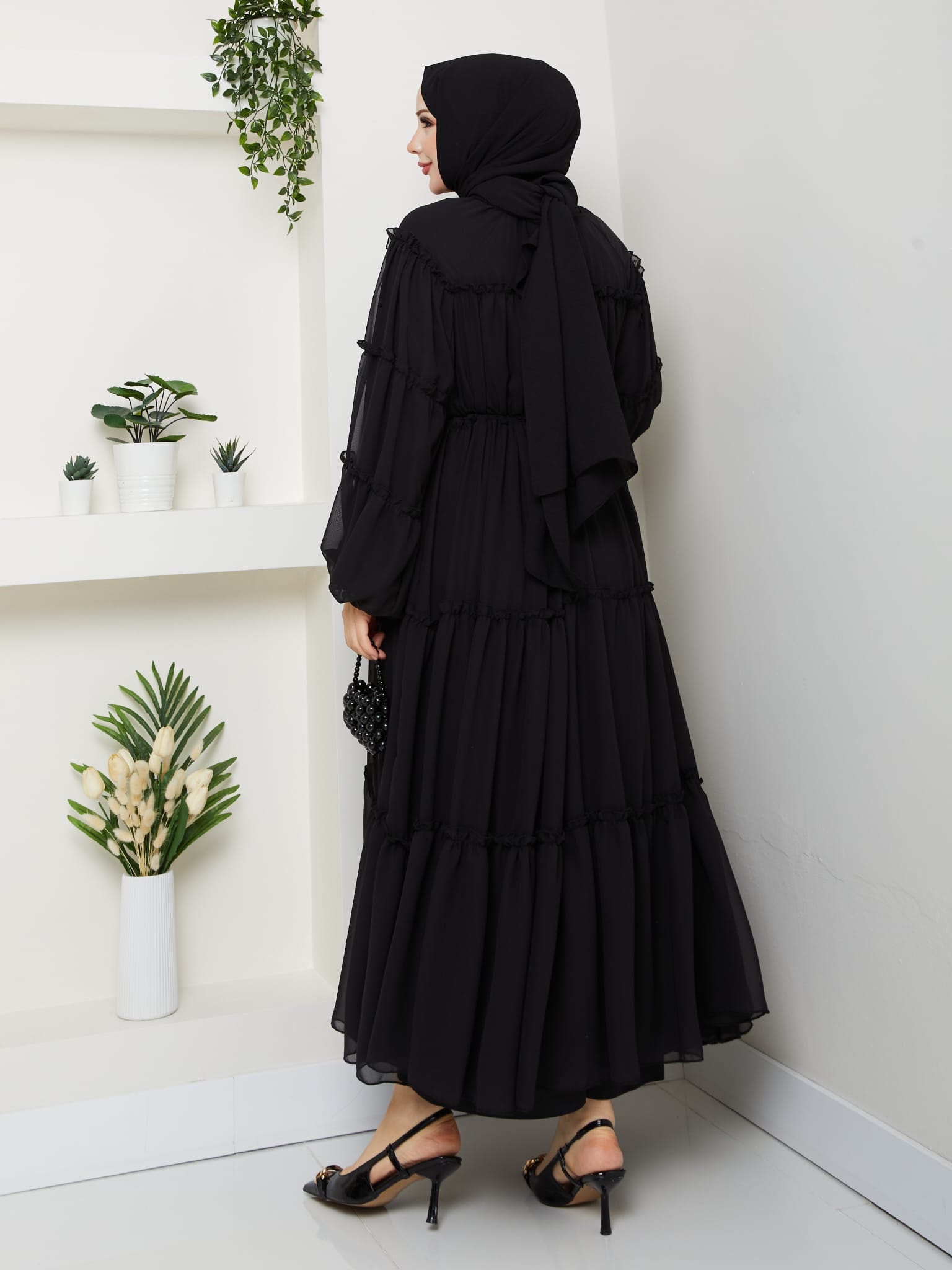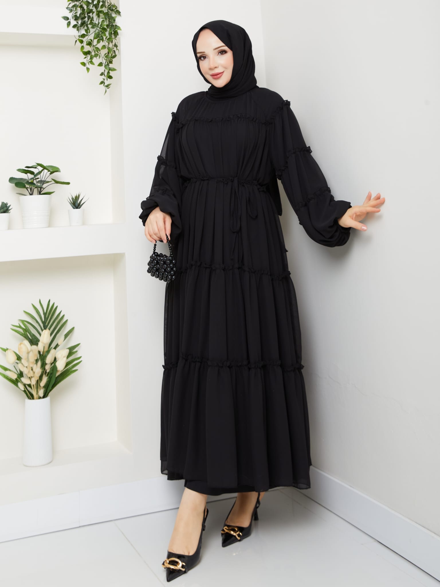 Sıyah sıfon elbise standart beden 38/46 aralıgında olan her bedene uygundur ıc kısmı astarlı boy 130 cm