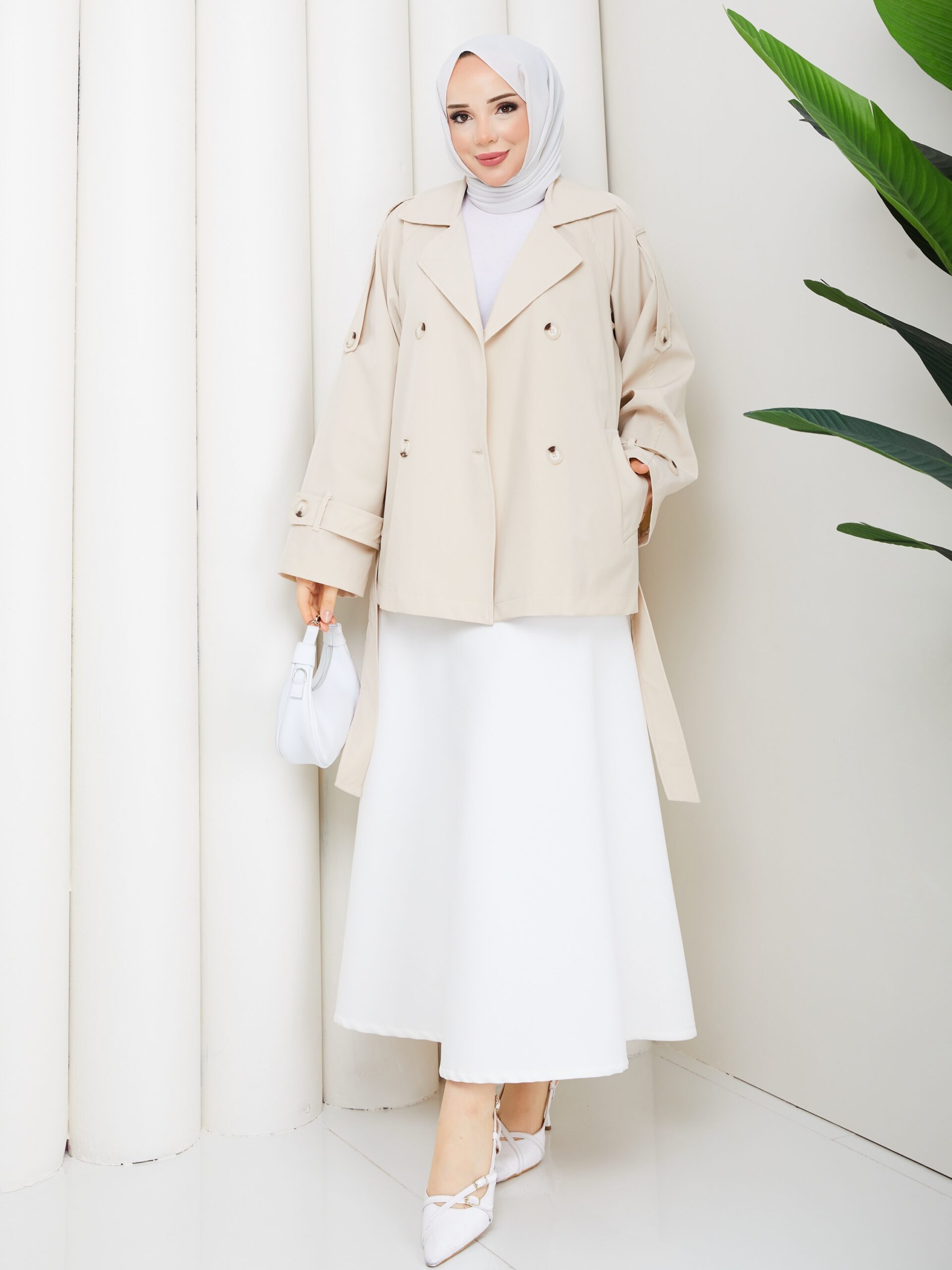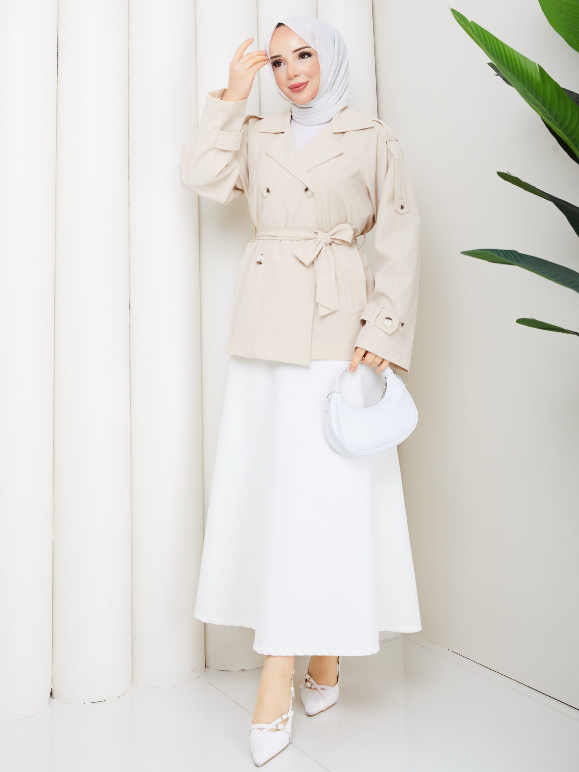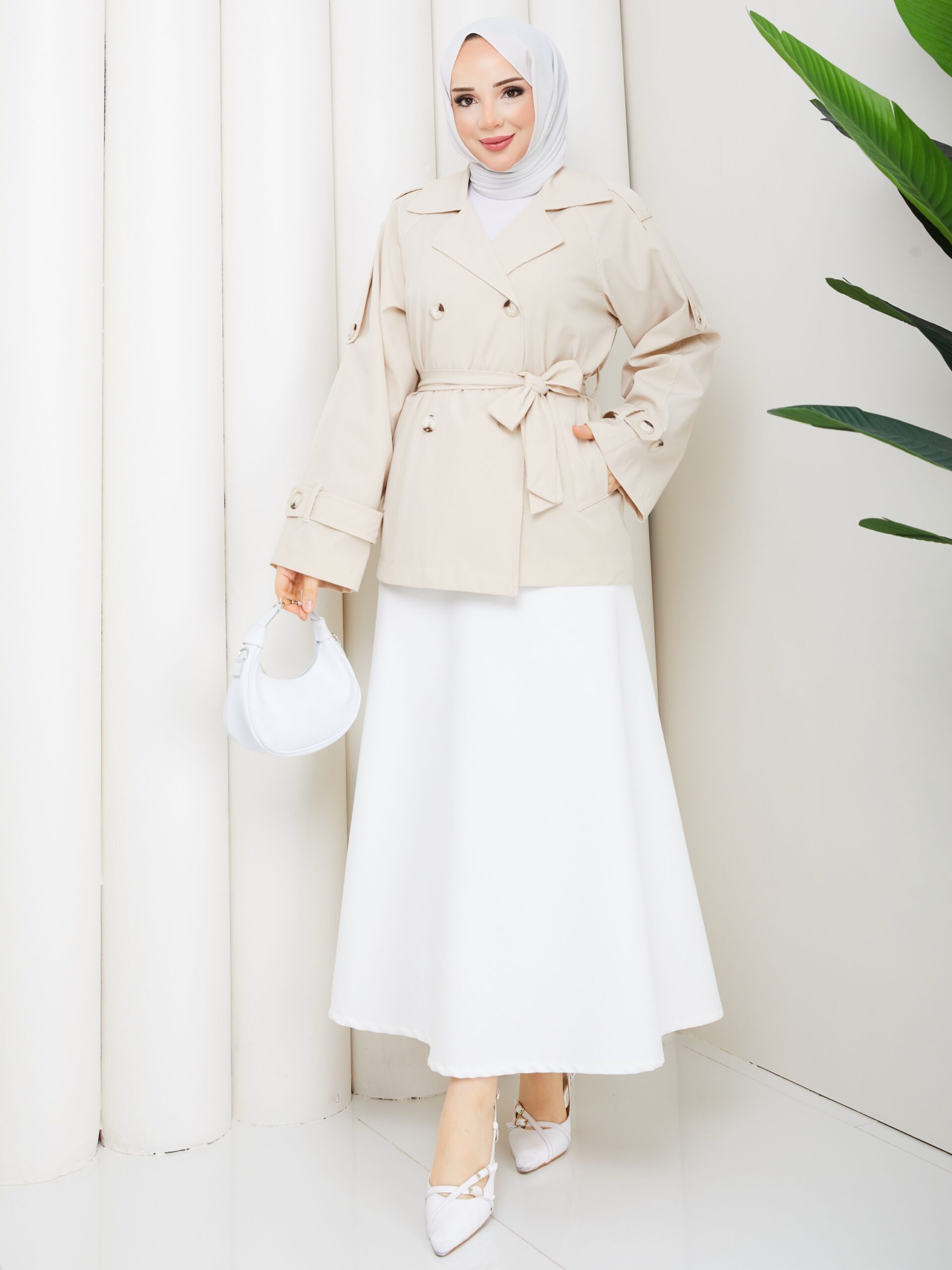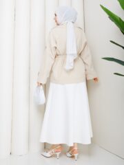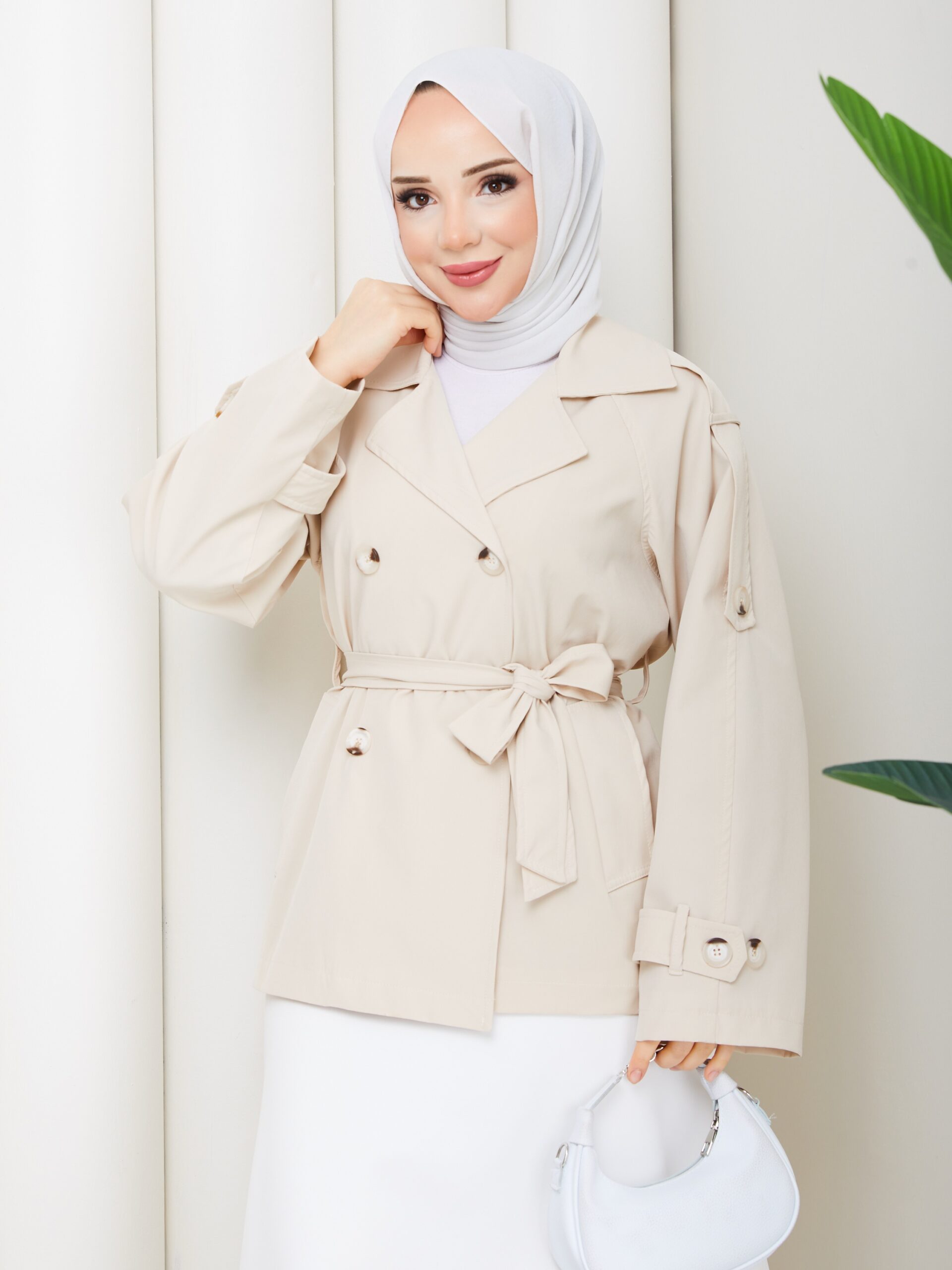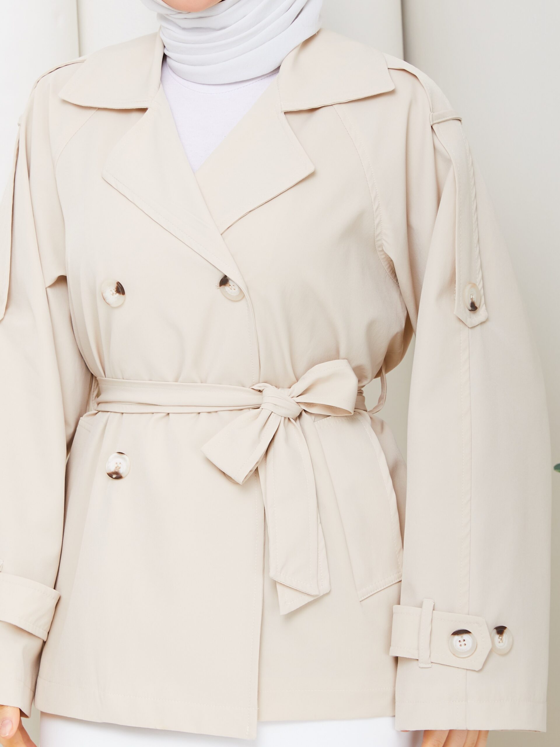 Bej renk kemerlı mont