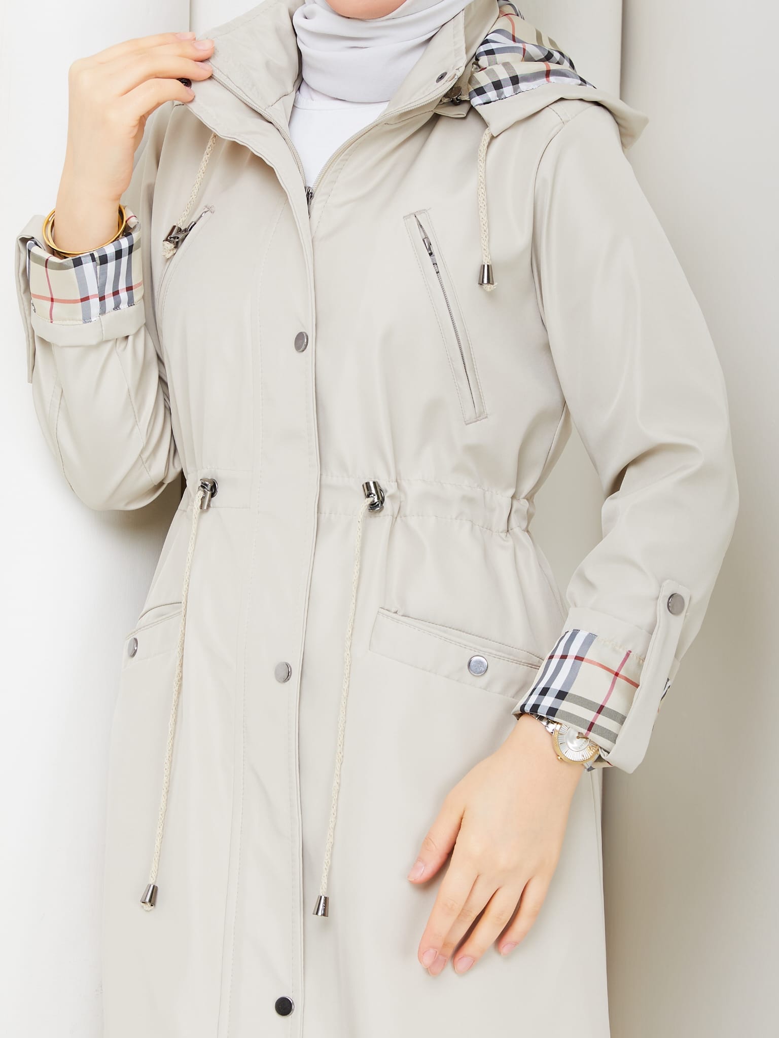 Bonded kumaşın su kaydırma ve rüzgar kesme özelliği sayesinde, baharın değişken hava koşullarında hem korunun hem de şıklığınızdan ödün vermeyin. Manşetleri kıvırarak kareli astarı ön plana çıkarabilir, stilinize hareket katabilirsiniz.