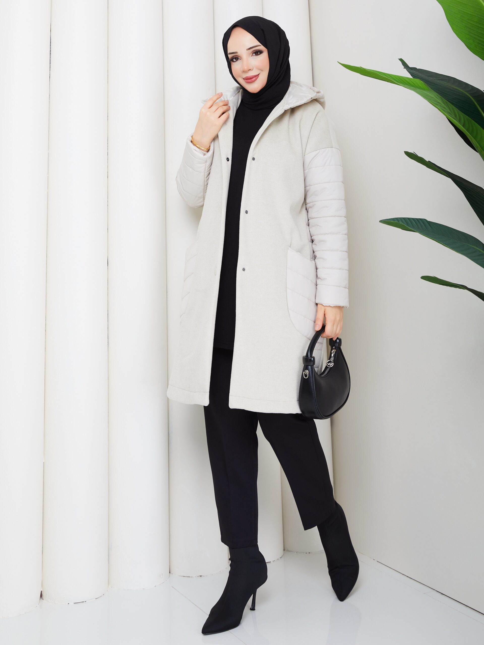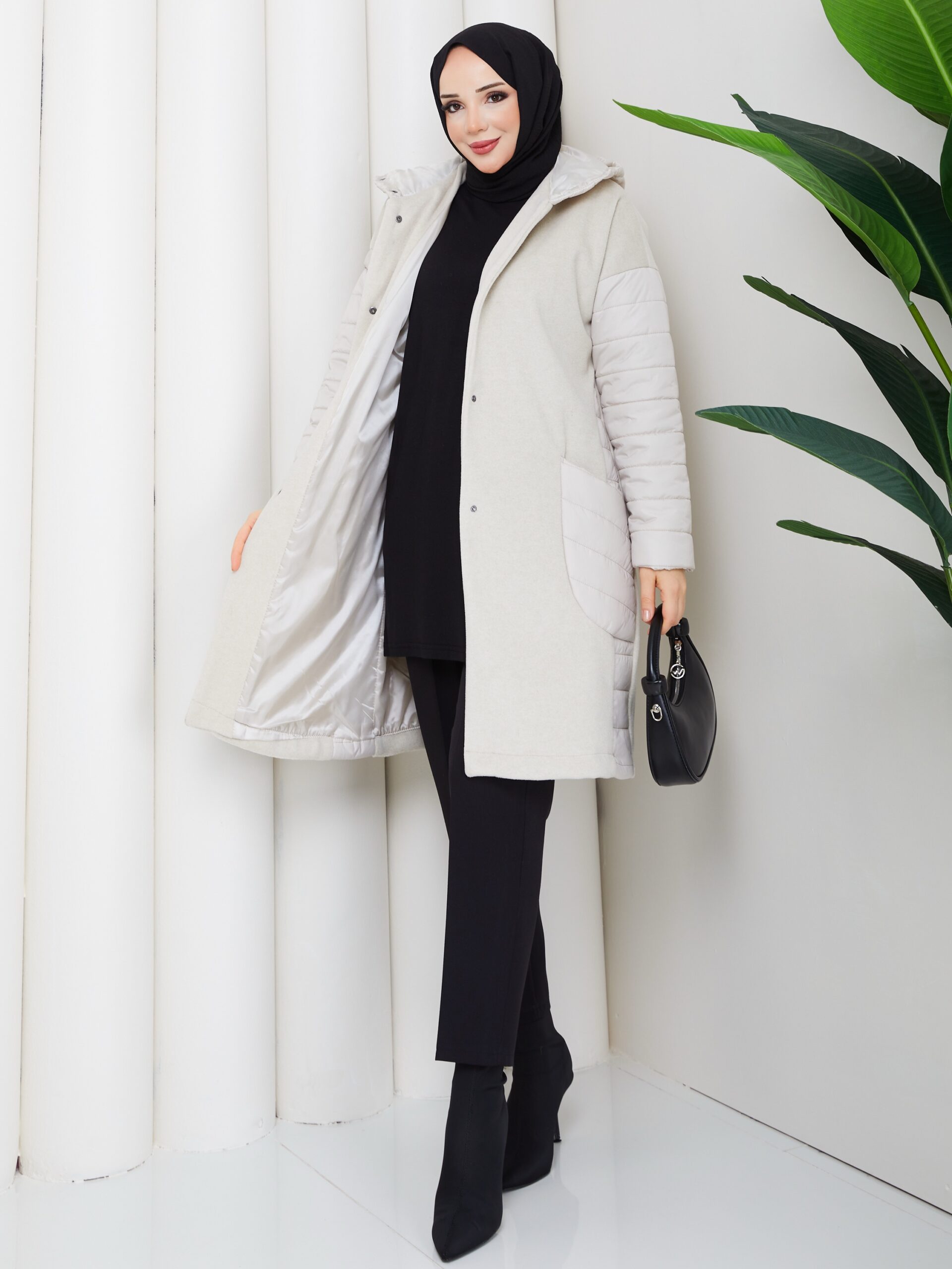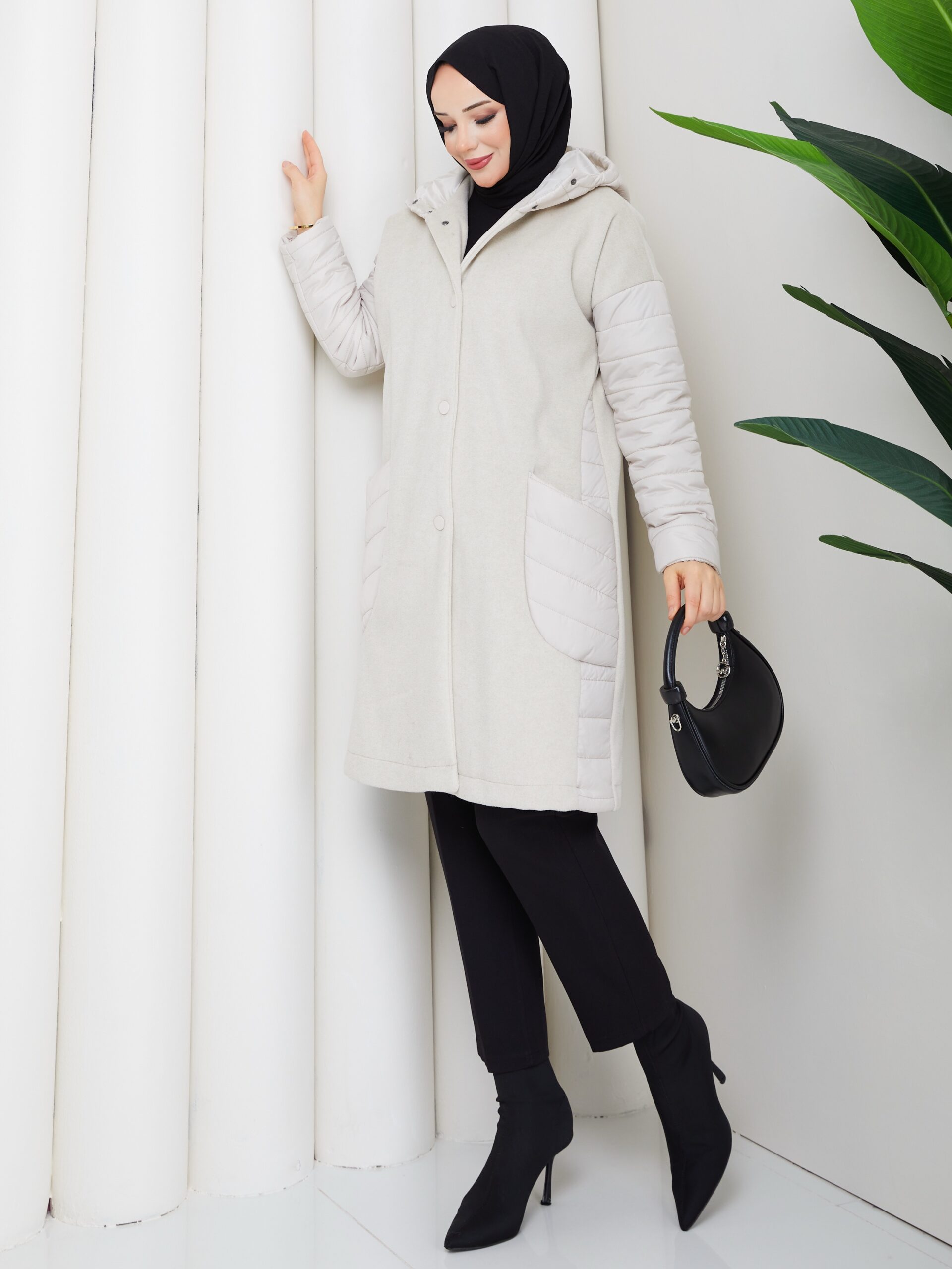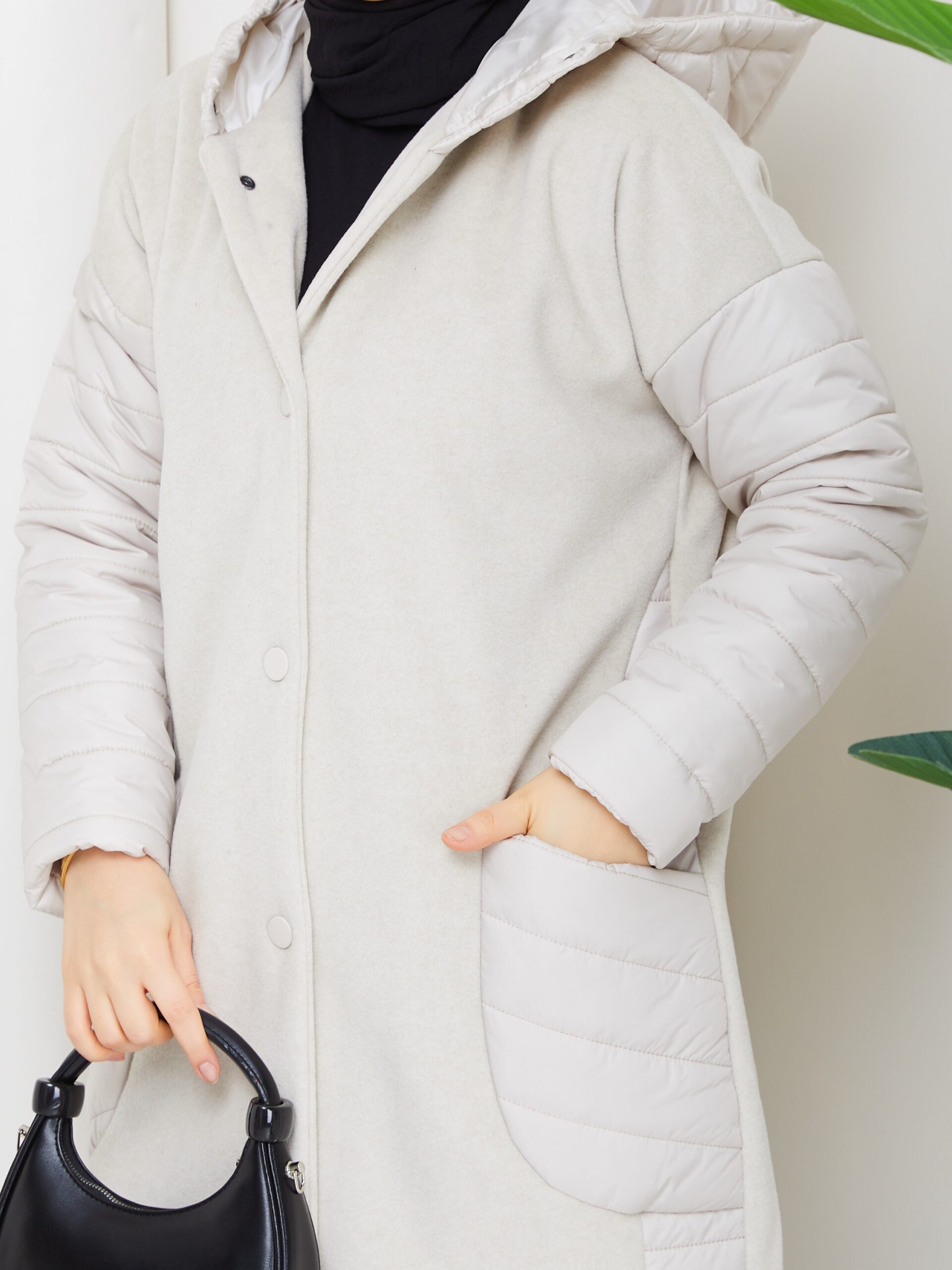Sıyah kapıtone ve kase karışımlı mont