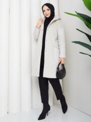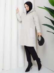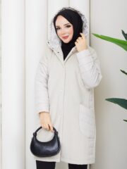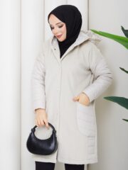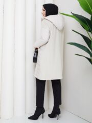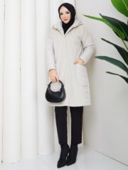 Bej renk kemerlı mont