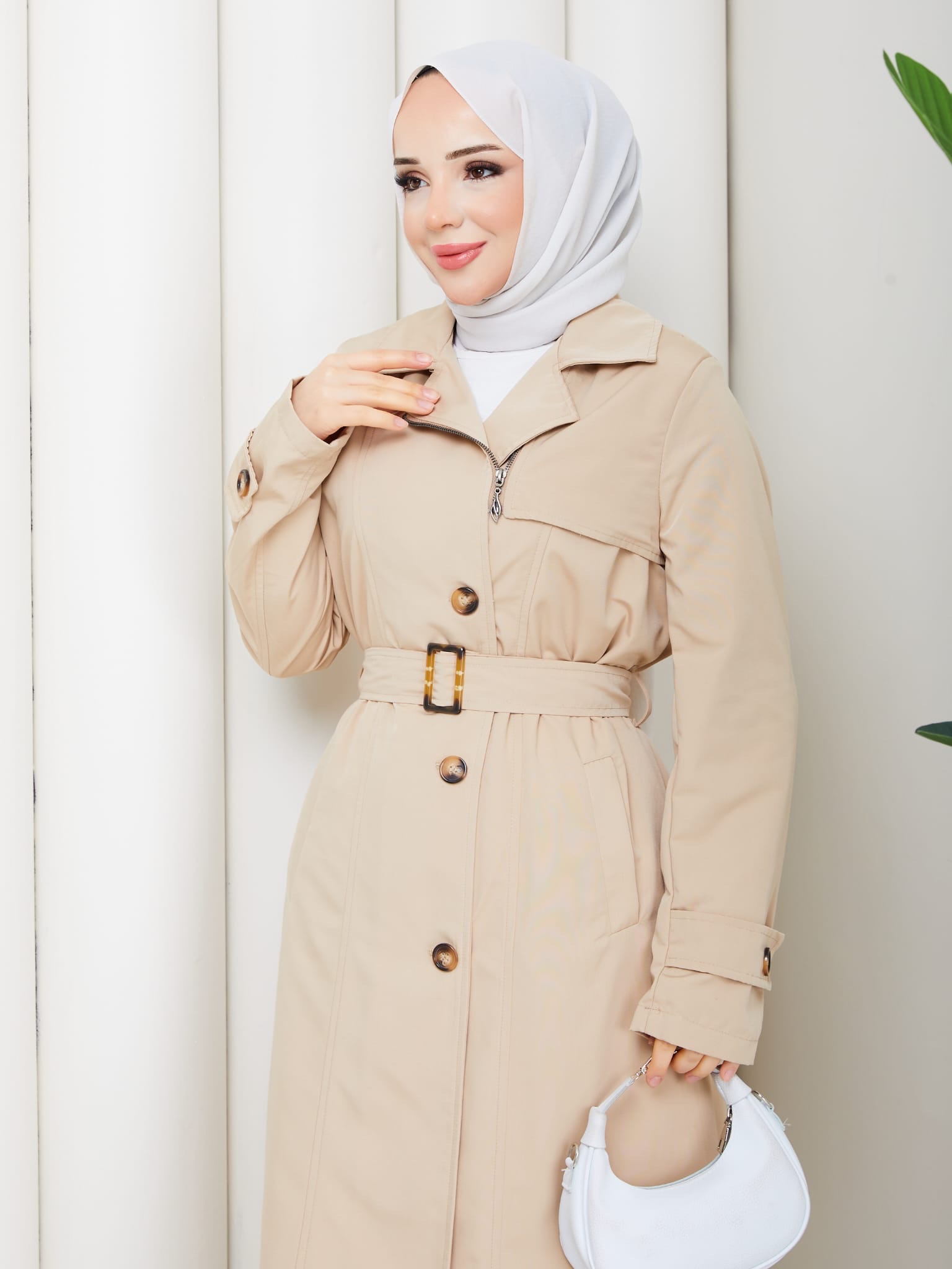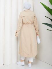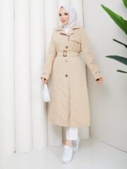 Bej renk kemerlı mont