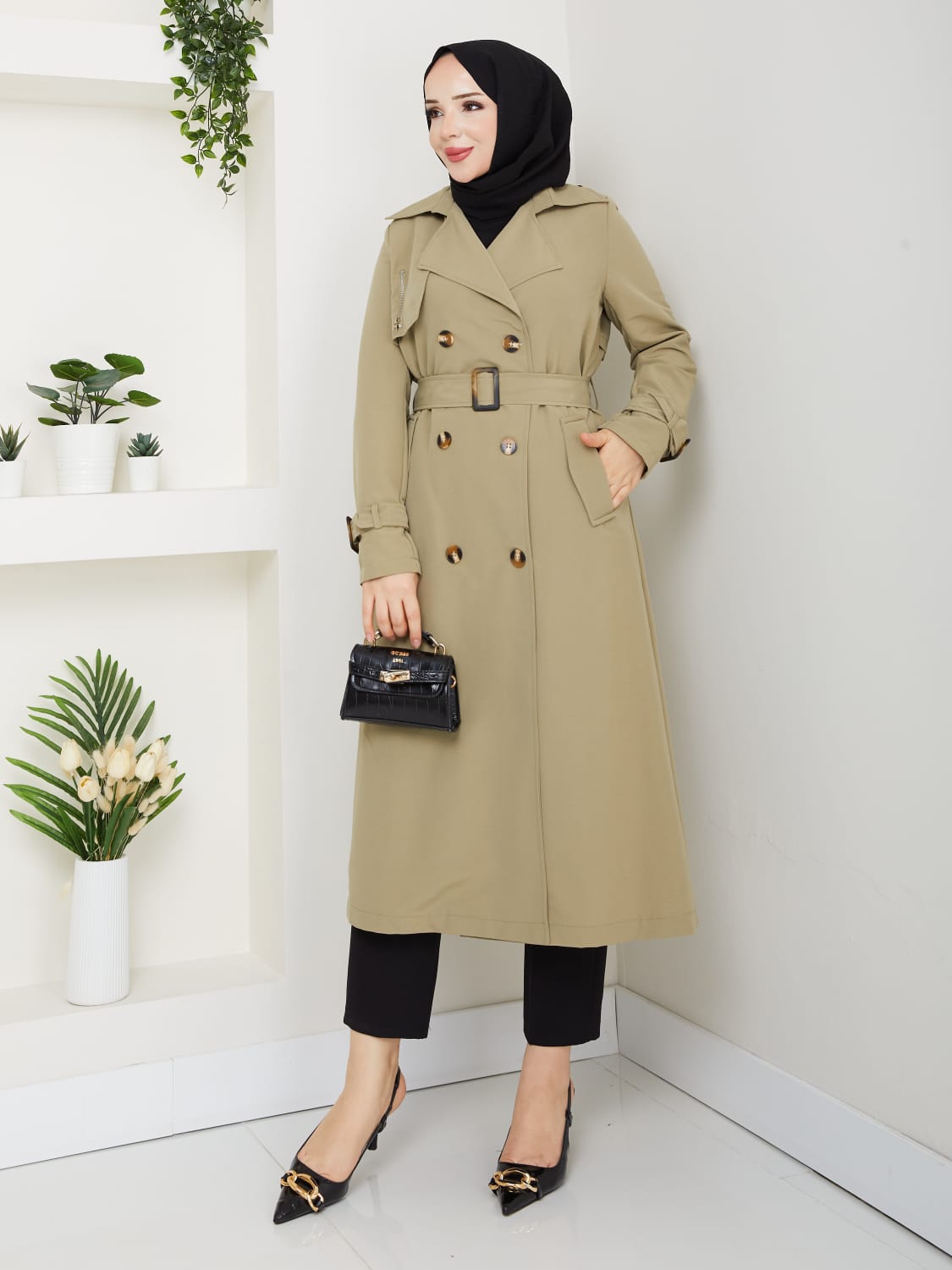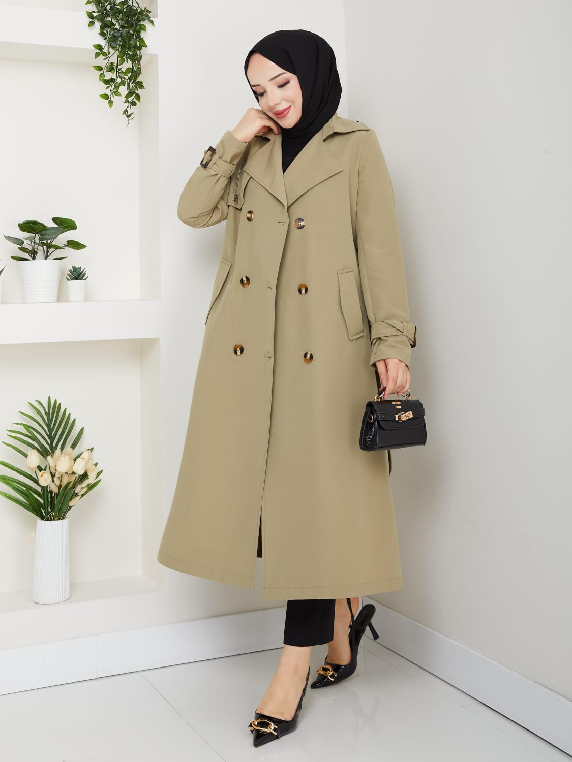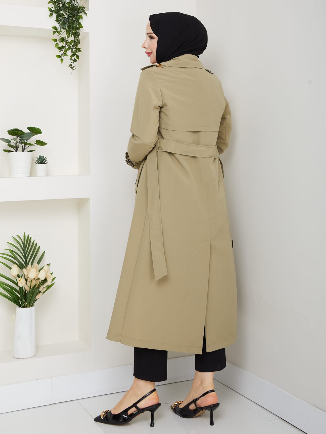 Zarif detayları ve modern çizgisiyle her kombininize kolayca uyum sağlayan bu trençkot, stilinize sofistike bir dokunuş katacak.